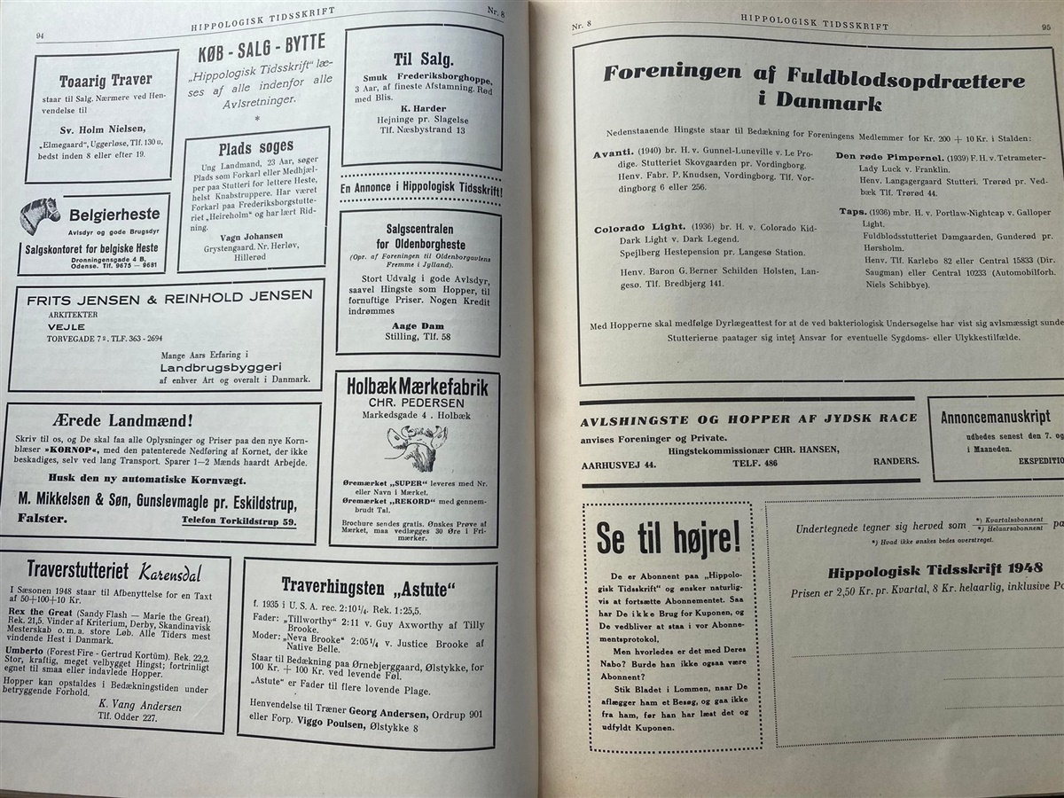 Man brugte endnu primært hestene i landbruget. Mekaniseringen begyndte dog så småt at røre på sig og man spåede især at traktoren ville få en stor fremtid i landbruget. Hvor længe denne mekanisering ville tage og om det ville være helt slut med heste foran ploven? Det kunne man kun gisne om i 1948. Dette vil der dog uden tvivl være mere om i de kommende afsnit af den hippologiske tidsrejse.