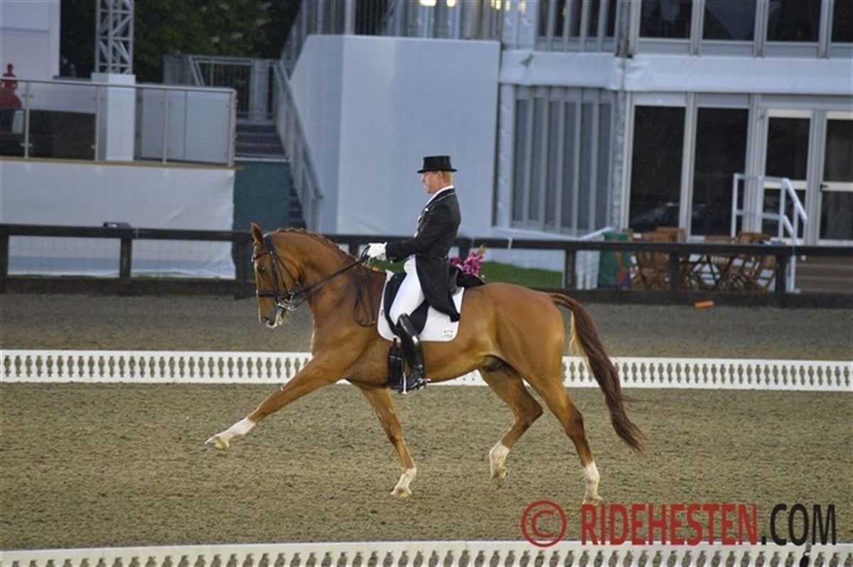 På 2. pladsen kom også en dansker – dog med en engelsk rytter på ryggen. Det var nemlig Anders’ kone Fiona Bigwood på den danskavlede Atterupgaards Orthilia (e. Gribaldi / Donnerschlag) der viste et rigtig flot travprogram. De fik 74,060%.