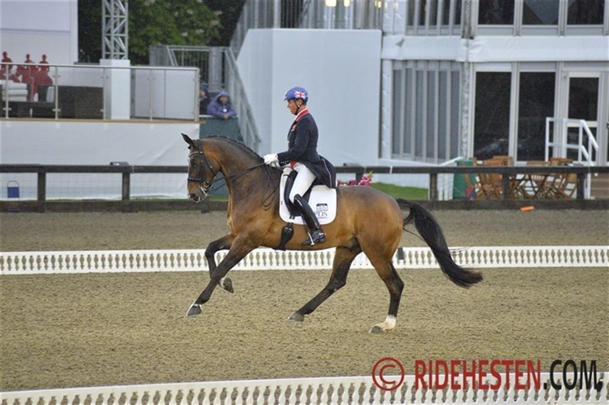 Overskriften for Torsdag til Royal Windsor Horse Show kunne være ’regnvejr!’. Hele dagen væltede regnen ned og gjorde den smukke Castle Arena til en mudderpøl. Alligevel blev en del tilskuere til sen aften for at overvære den 3-stjernede Grand Prix. Første rytter på banen var Britiske Carl Hester og Nip Tuck, de leverede et flot og meget flydende program, som de også blev belønnet for med hele 75,380%.