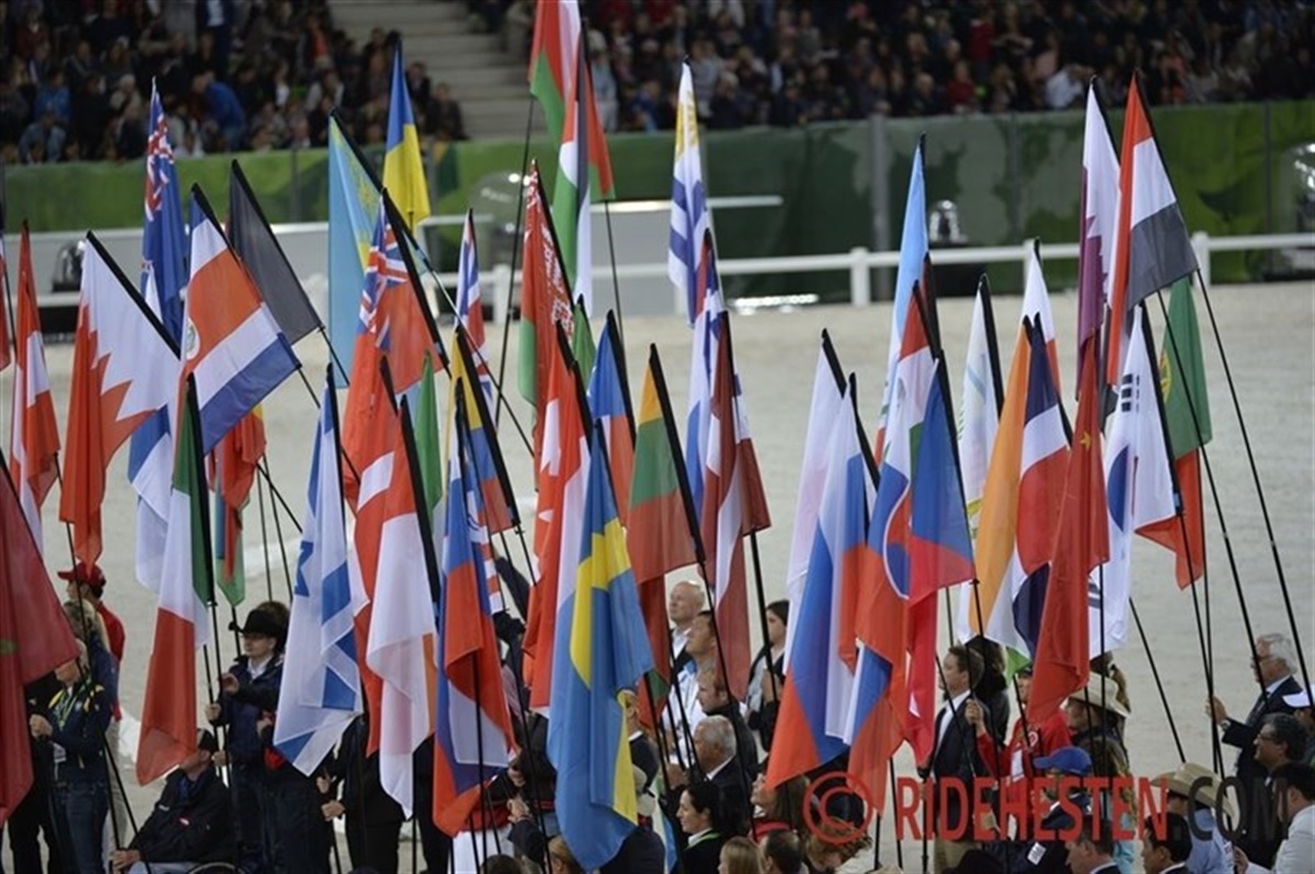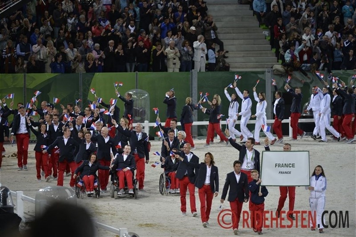 Anne Prain, formand for dommerkomiteen for Para-Dressur tog FEI løfte på vegne af dommere. Hun talte om fair play og integritet, mens atleternes tilsagn blev givet af Kevin Staut: "På vegne af alle ryttere, lover jeg, at vi deltager i Alltech FEI World Equestrian Games 2014 i Normandiet og respektere og overholde de regler, der styrer legene, vi forpligter os til en sport uden doping, i den sande ånd af hestens velfærd og sportsånd, til ære for ridesporten og æren for vores teams.
