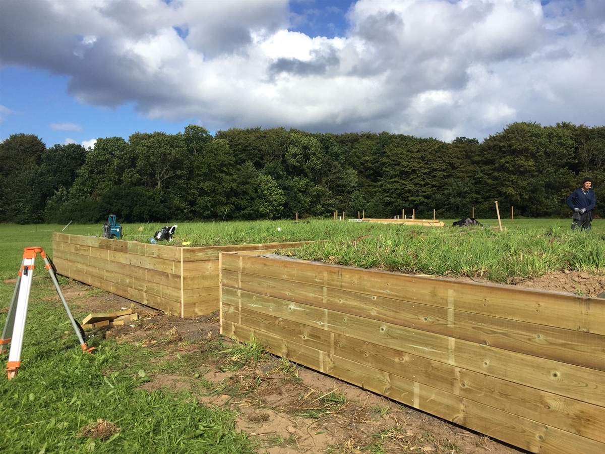 De i alt 2.500 blomster som skal pryde militarybanen kommer til Vilhelmsborg på søndag, de skal være med til at sætte det sidste præg på banens endelige udtryk. Der blev desuden skovet hele seks trailerfulde birkeskud i weekenden som skal bruges til gennemslag på springene. - Bunden på militaryanlægget ser fantastisk ud, på trods af alt det vand der er kommet, og dette kombineret med en meget lovende vejrudsigt for næste uge, så ser det ud til, at alt går op i en højere enhed, understreger Casper Cassøe.