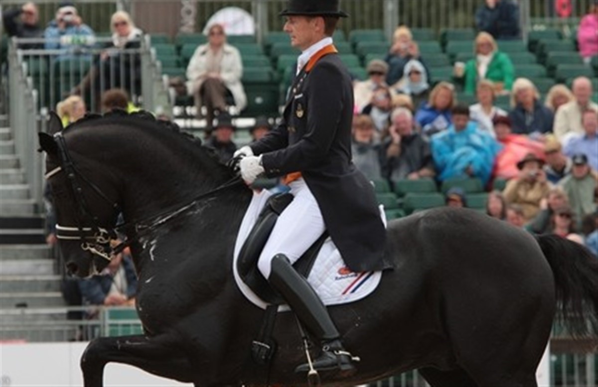 Der gik et gisp gennem publikum, da Morelands Totilas kom ind i Castle Arena i passage. Den sorte, kun 9-årige Gribaldi-søn er på vej til at skrive sig ind i historiebøgerne med imponerende hastighed. Hele 23 titaller fik hingsten af dommerne i dag, og det var ikke et eneste for lidt. I adskillige øvelser viser hingsten en så overlegen teknik, at det er helt uhørt. Det er ren energi i noget, som Edward Gal erkender; kan blive farligt, såfremt man mister kontrollen. Edward Gal stiftede første gang bekendtskab med Totilas da hingsten var 6 år og stod hos opdrætteren. - Jeg vik tilsendt en DVD af hingsten i konkurrence, fortæller Gal, der ønskede at prøve Totilas. - Jeg sad kun på ham i 3 sekunder, så sprang jeg af, fortæller Gal med et smil. Han fik omgående en fornemmelse af den enorme kraft, der gemmer sig i hingstens sortklædte, kompakte krop. - Jeg kom tilbage den næste dag med min hestepasser, så kunne han kravle op først, fortæller Edward - han lage benene til hingsten og væk var han. Den energi som Totilas udstråler på banen ser ud til at være under fuld kontrol af Edward Gal, men han fortæller; at han flere gange var i tvivl om, hvorvidt øvelsen ville lykkes, eller det ville gå helt galt. - Jeg sad i dag og tænkte, det går ikke...jo det gjorde det alligevel. Det var en vidunderlig test, selvom Totilas blev lidt spændt over at høre fotografernes klikken. Da jeg så min score blev jeg meget lettet. Se galleriet med billeder fra Edward Gal og Moorlands Totilas rekord ridt.