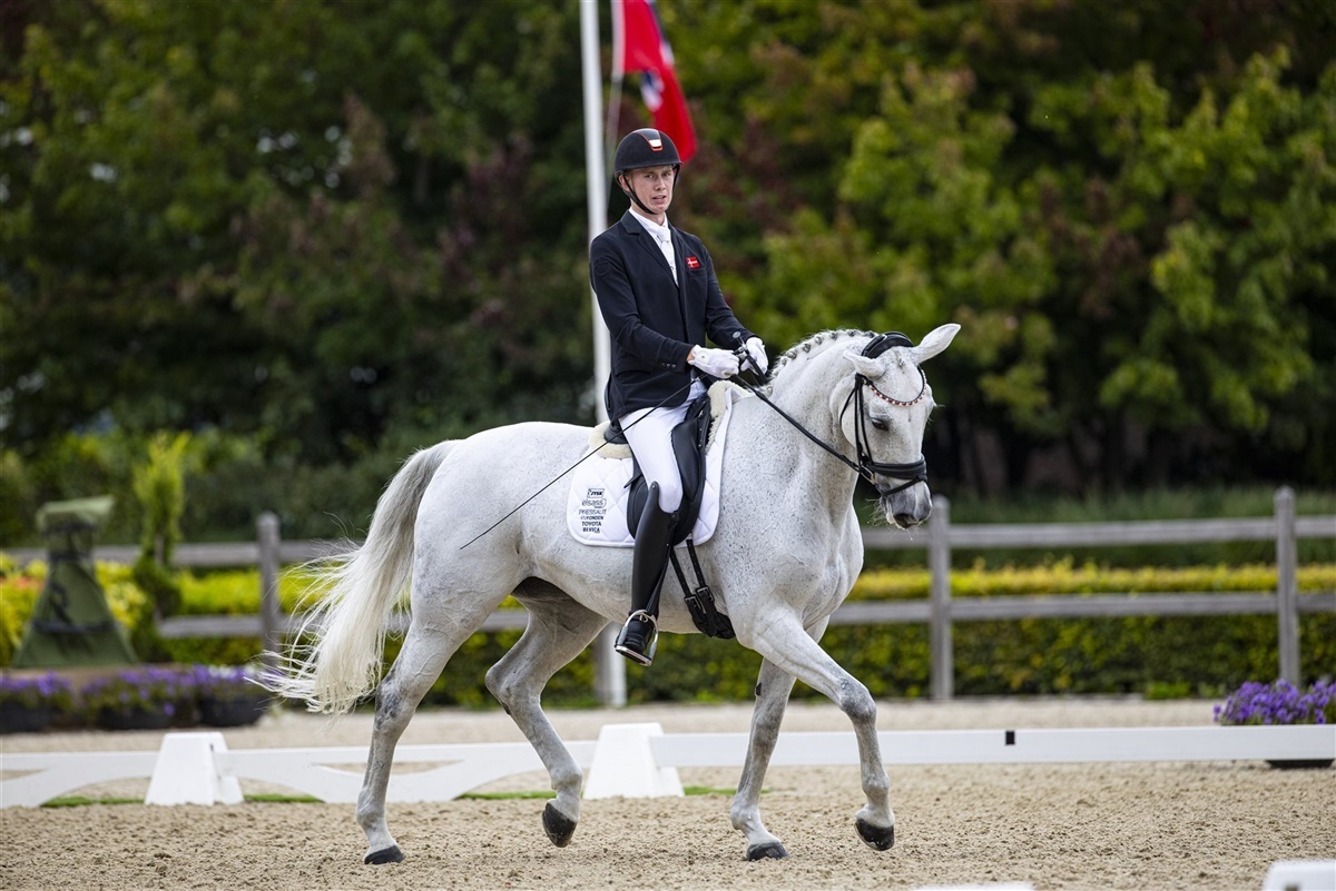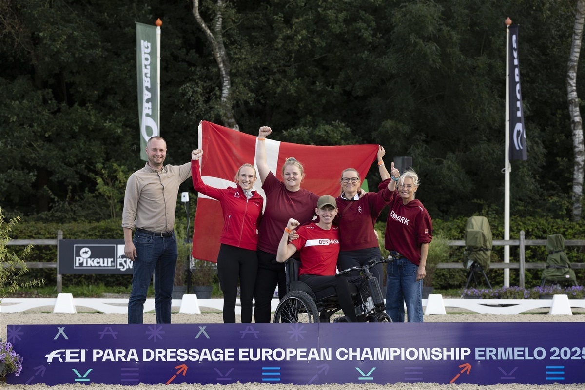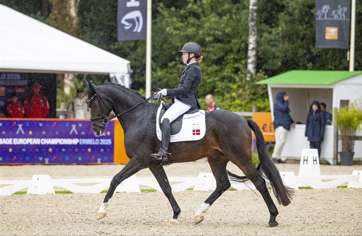 Danmark har fire ekvipager med til årets europamesterskab, og det er nogle af de allerstærkeste, som alle har erfaring fra VM og OL. Første ekvipage til start i dag var Katrine Bjelke Kristensen med den 17-årige DV-vallak Gørklintgårds Quater e. Quaterback/ Blue Hors Don Schufro (opdr. Jørgen Ravn). Parret har to DM-titler bag sig og ikke mindst to individuelle sølvmedaljer ved PL i Paris 2024 samt to gange individuelt guld og holdsølv fra VM i Herning 2022, da deres makkerskab stadig var ganske nyt.