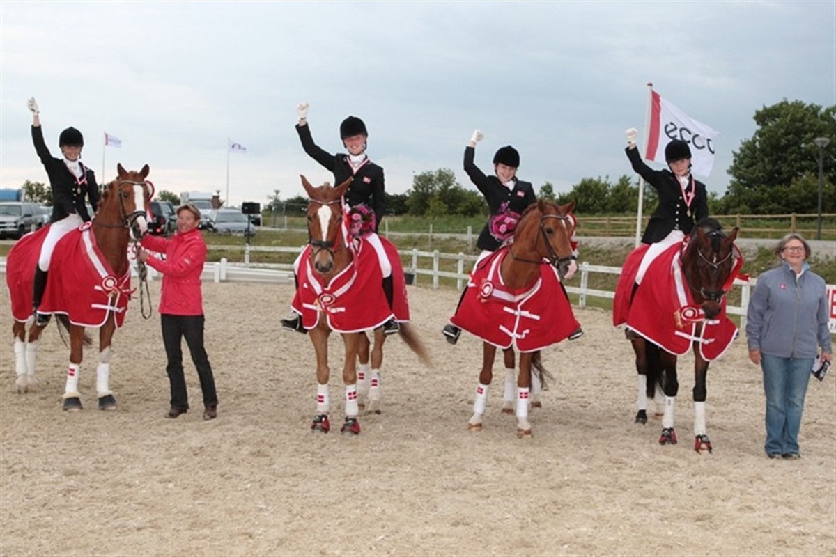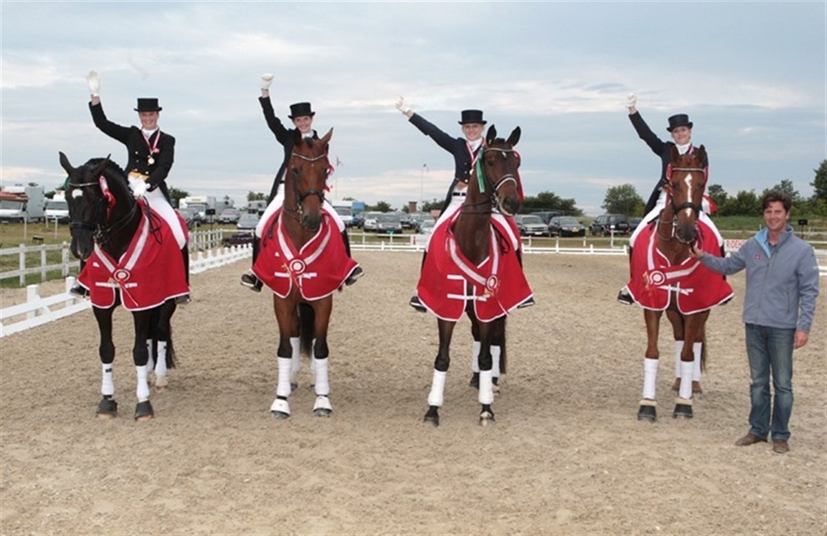 Tre ud af tre mulige holdkonkurrencer blev i dag vundet af de danske hold. Først var det ponyrytterne i kat. 1, som vandt deres holdmesterskab foran Sverige. Finland fik bronze. Dernæst blev det tid for de ældste ryttere ved dette mesterskab. Her viste de danske ungryttere igen Danish Dynamite og vandt guld lige for næsten af Sverige og igen holdet fra Finland. Her til aften sluttede det tredje danske hold med juniorryttere dagen af med at vinde guld. Altså må man sige at der var fest i den danske lejr her på førstedagen ved de Nordiske Mesterskaber på Middelfart Ridecenter. De tre danske hold bestod af: PONY KAT. I: Rikke Lindberg/Brooklands Moonwalker Anne Fabricius Tange/Tim Sofie Hougaard/Dornick-Son Sabrina Barnekow/Vermont. JUNIORER: Nanna Skodborg Merrald/Millibar Cecilie Stengelshøj Madsen/Laurentius Cathrine Dufour/Aithon Marie-Louise Larsen/Romar. YOUNG RIDERS: Anna Kasprzak/Blue Hors Future Cup Sofie Jeppesen/Robin Anne K. Elkjær-Holm/Bernstein Carina Nevermann Torup/ Come Back After 8.