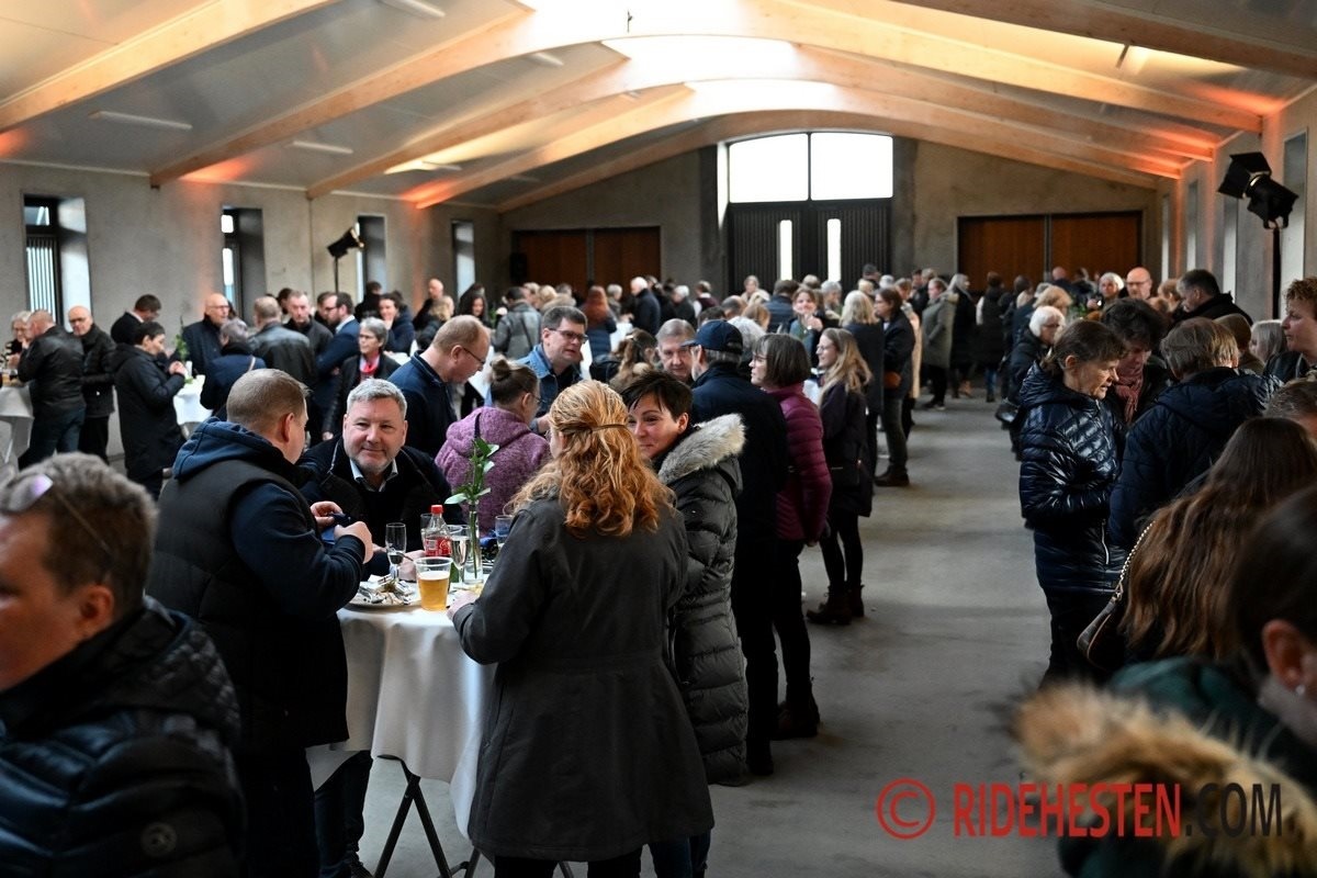 Endvidere var stalden på Plougstrupgård i Bredsten åben for gæster, der havde lyst til at køre ud og kigge på løsdriften med opvækst. Inden et brag af en hingstefremvisning var der hygge og spisning i staldene på Blue Hors, hvor den store dag blev fejret, og der blev skålet i bobler.