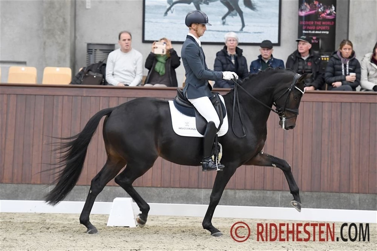 Sejren i dag gik til endnu en spansk rytter fra Helgstrand Dressage, nemlig Moisés Azuar, med hingsten Sir Floresco e. Sir Heinrich/Floresco med 93,8 og topkarakterer over hele linjen: 9,2 for trav, 9,2 for skridt, 9,5 for galop og 9,5 for både ridelighed og kapacitet.