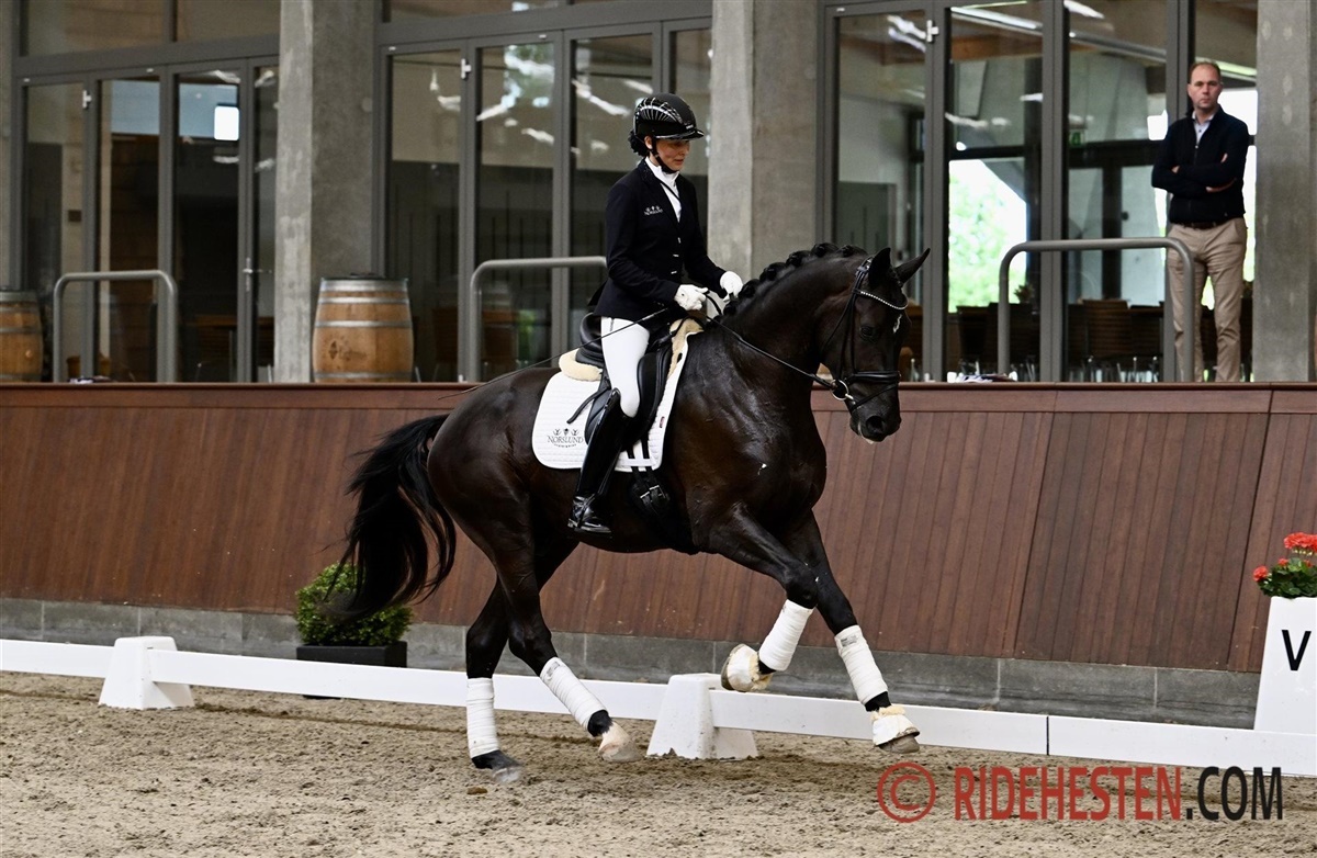 Det var dog ikke helt uden konkurrence, at sejren gik til Sandbæks Rio-Monte Vino DWB, for på andenpladsen med blot 0,142% forskel fandt vi DV-hoppen Abkærs Vitalina DWB e. Vitalis/ Rosevelt (opdr. Jens Chr. Thorhauge). Med Betina Jæger Jensen i sadlen opnåede de i alt 83,429% med blandt andet 8,8 for trav og 8,6 for harmoni.