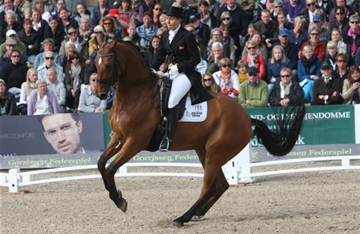 Lisbet Seierskilde på Jonstrupgårdens Raneur blev bedste danske ekvipage i Grand Prix’en, der blev redet over onsdag og torsdag. Stævnet er yderligere ekvipagernes sidste chance for at bevise for landstræneren, at de skal med til OL i London. Fire andre ekvipager rider deres sidste chance om to uger ved CHIO-stævnet i Aachen, hvorefter det endelige OL-hold sættes den 6. juli. Det danske dressurlandshold er sponsoreret af First Horse Hesteforsikring. Dansk 4. plads i Rotterdam Dressurlandsholdet sikrede sig en 4. plads i holdkonkurrencen, mens Holland blev nr. 1, Sverige blev nr. 2 og Belgien nr. 3. Bedste danske Grand Prix blev fremvist af Lisbet Seierskilde på Jonstrupgårdens Raneur, der opnåede en score på 71,404 % og en individuel 8. plads, hvilket giver adgang til küren lørdag. Ekvipagens program blev især fremhævet af flotte serier og god piaffe og passage. Jonstrupgårdens Raneur virkede dog til tider lidt distraheret af omgivelserne, hvilket desværre påvirkede flere af øvelserne. Anne van Olst på Exquis Taikoen havde en fin tur onsdag, der bød på stærk piaffe og passage samt flotte serier, hvor især 1’er changementerne var i særklasse. Desværre blev det til et kiks på den sidste midterlinje, hvilket gik ud over både en piaffe og overgangen. I alt blev det til 70,426 % og en 13. plads, hvilket giver adgang til Grand Prix Special fredag. Lone Jørgensen og FBW De Vito var også på banen torsdag, hvor det blev til et resultat på 69,234 % og en 20 plads, hvilket gør, at der skal rides Grand Prix Special fredag. Grand Prix-programmet blev desværre præget af, at FBW De Vito var meget anspændt og opmærksom på omgivelserne, hvilket desværre udløste en del fejl. Der var dog også fine momenter, hvor især piaffen kan fremhæves. OL-pladser på spil Landstræner Rudolf Zeilinger følger ekvipagernes præstationer nøje i Rotterdam, for det er blandt disse tre ekvipager og de fire, der skal ride i Aachen, at han skal finde de tre landsholdsekvipager samt den individuelle, som Danmark skal stille med i London. Anne Troensegaard og Seduc var også udtaget til at ride i Rotterdam, men ekvipagen er desværre ikke med pga. en skade. Program: CDIO i Rotterdam Fredag den 22. juni kl. 13.30 – 17.00: Grand Prix Special Lørdag den 23. juni kl. 20.00 – 22.00: Grand Prix Kür Landshold: Aachen Nathalie zu Sayn-Wittgenstein/Digby Anna Kasprzak/Donnperignon Sidsel Johansen/Schianto Anne van Olst/Exquis Clearwater Stærke takter op til OL De danske dressurryttere har været særdeles stærkt ridende her godt to måneder før OL., hvilket tegner godt for forsvaret af bronzemedaljen fra OL 2008. OL i London varer fra den 27. juli – 12. august, og dressuren afvikles fra den 2. – 9. august. Kilde: Dansk Ride Forbund Se flere resultater via linket til højre.