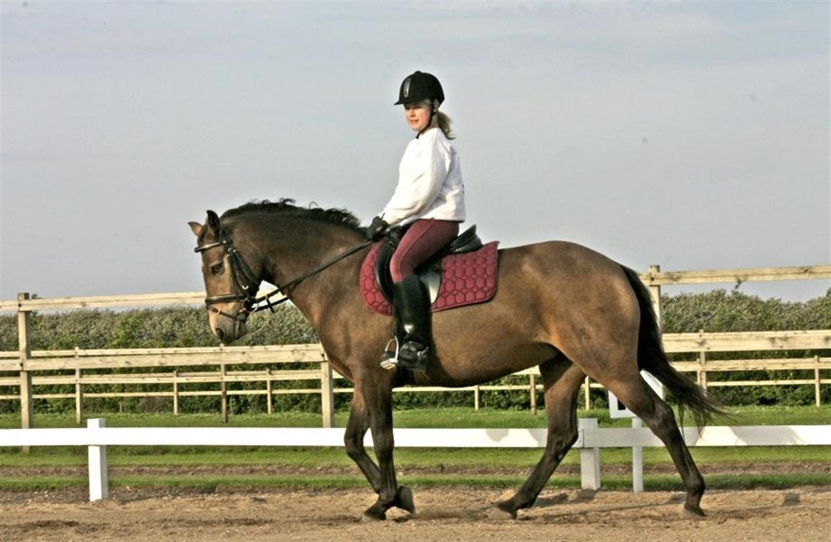For at hverken hesten eller du selv begynder at spænde op, skal du huske at sidde lige op og ned på hesten. Du kan få en anden til at se bagfra, om din ryg ser ud som en lige linie oven på hesten. Derudover kan personen også se efter, om der går en lige linie fra dit øre gennem din skulder, albue, hofte og ned til din hæl. Der er også en tredje linie, som går fra din albue gennem dit håndled og ned til hestens bid.