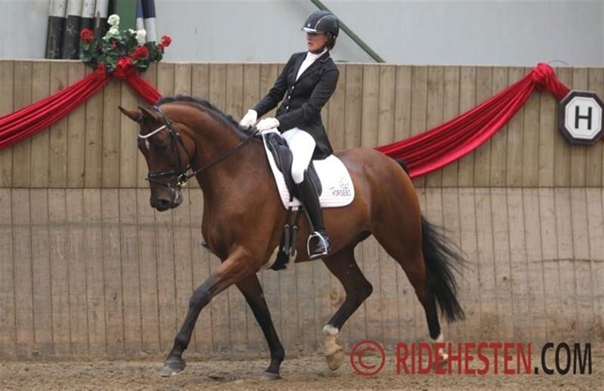 Jeg skal ride på Sky News Horsebo e. Zardin Firfod/ Ramiro's Bube, som er halvbror til Horsebo Smarties og som vi selv har opdrættet.