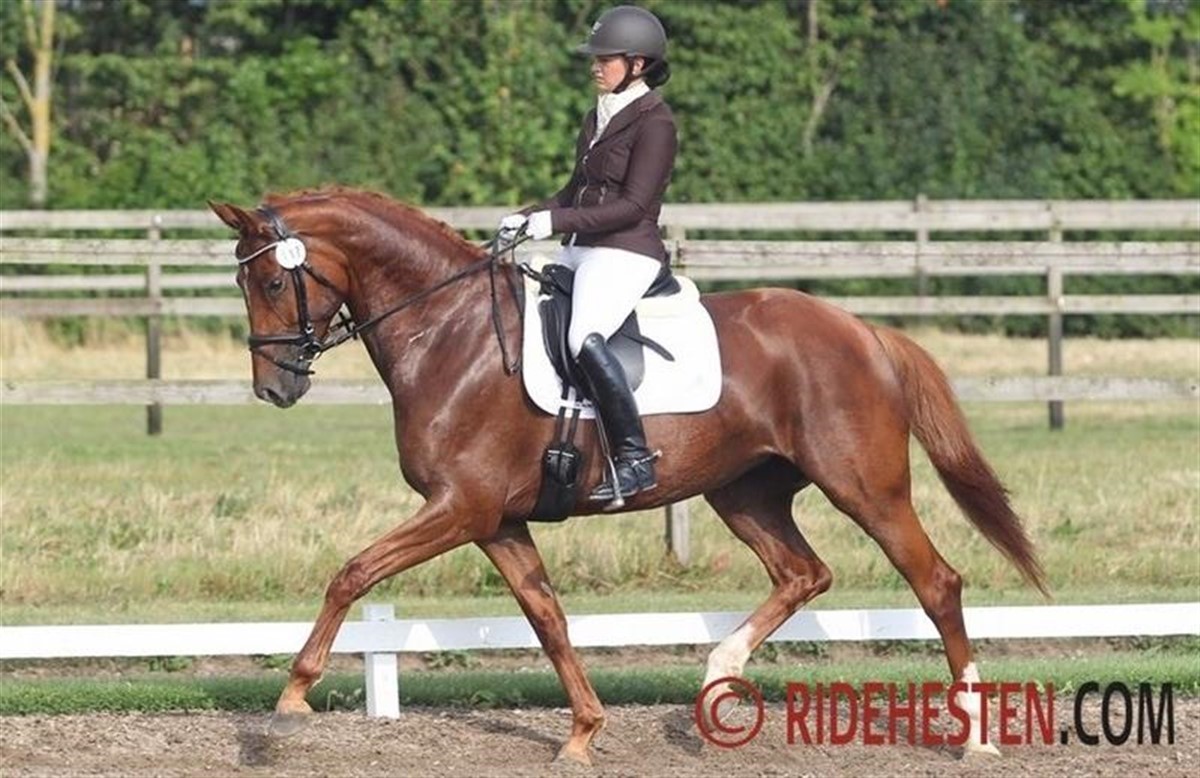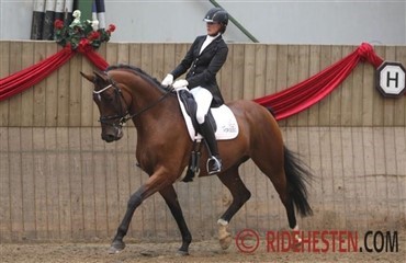 - Til kvalifikationsstævnet red vi en gang i Tørring til 8,08. Det var vi tilfredse med, da vi på det tidspunkt var ret nye for hinanden, og der var ikke mange heste over 8 i Tørring - selvom niveauet var højt! Til mellemrunden havde vi lært hinanden bedre at kende og Heartmade har udviklet sig rigtig meget! Dog fik vi ikke vist os fra vores bedste side, fordi vi fik en meget kort opvarmning. Heartmade tabte en sko lige idet jeg satte mig op, så vi fik kun 10 min opvarmning! Hun er heldigvis en dame, som elsker at være inde på banen og med 8,38 er vi ret tilfredse, og der er mere at gå efter.