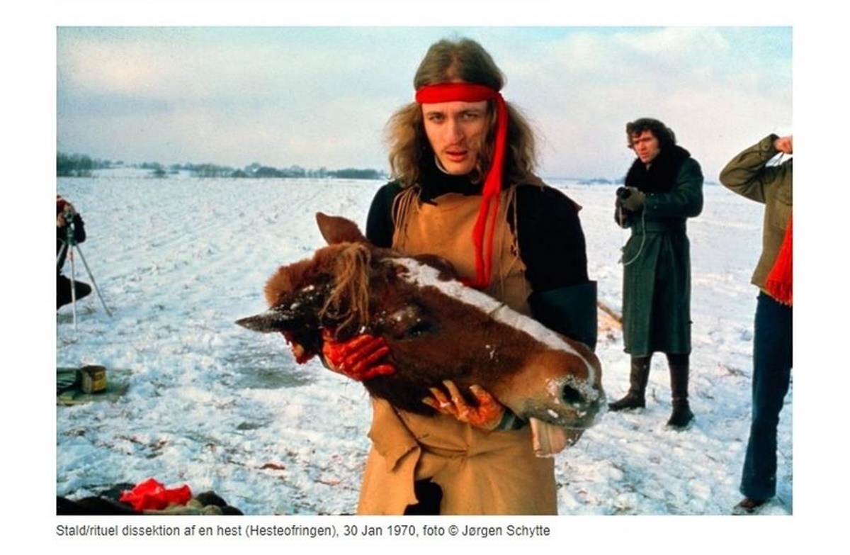 På en mark ved Kirke Hyllinge på Sjælland blev den 12-årige frederiksborgerhoppe Røde Fane skudt med en boltpistol og derefter dissekeret af "antikkunstner" Bjørn Nørgaard, der foretog ofringen af hesten efter gamle skrifter og ritualer.