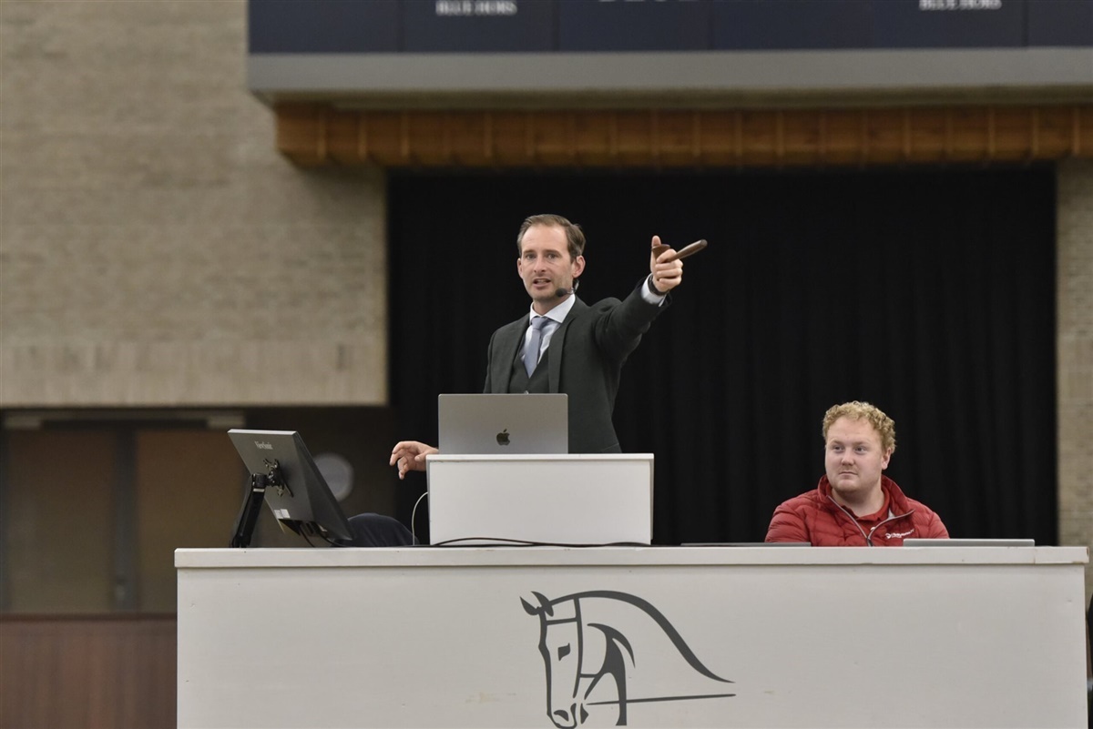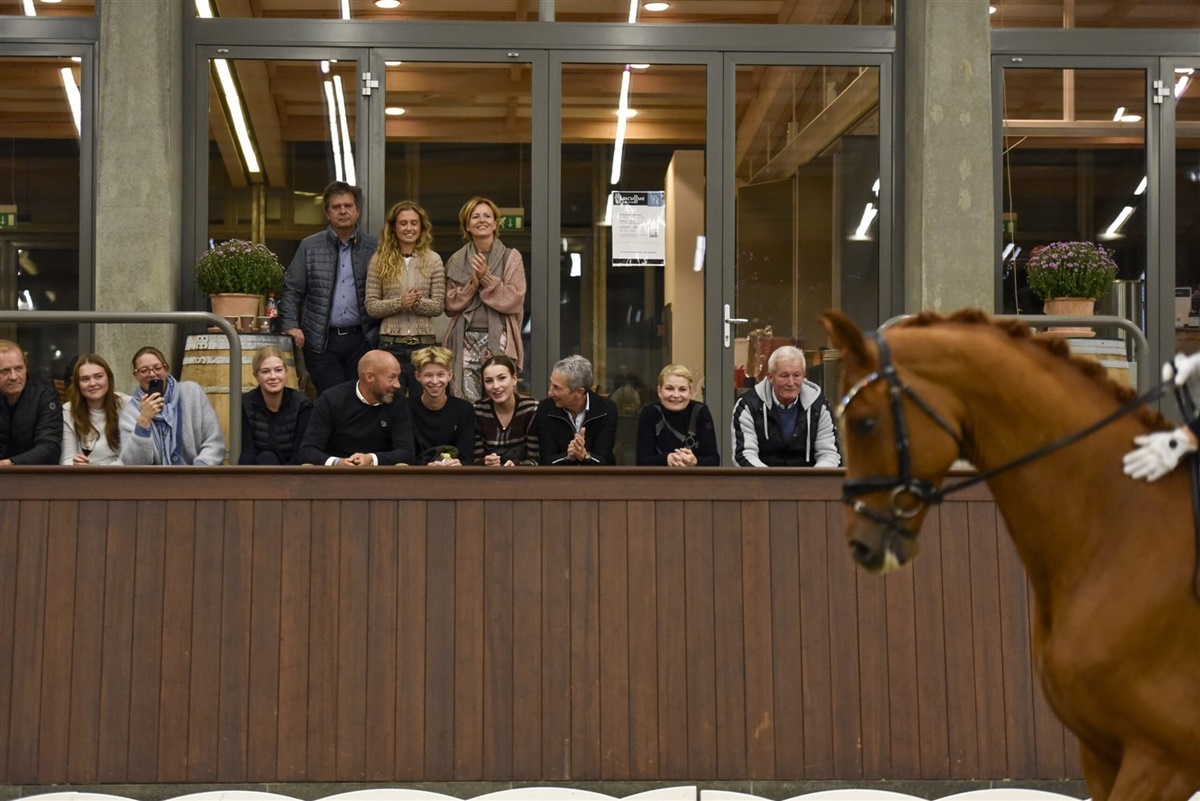 Det store øjeblik af aftenen var salget af den smukke vallak Emmit e. Escamillo, aom blev præsenteret af Blue Hors’ dygtige berider Cristian Tudela Ruiz. Salgsprisen lød på imponerende 58.000 euro, og hesten blev købt af en online budgiver fra Belgien.