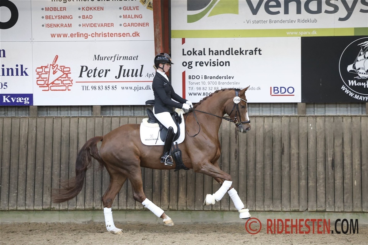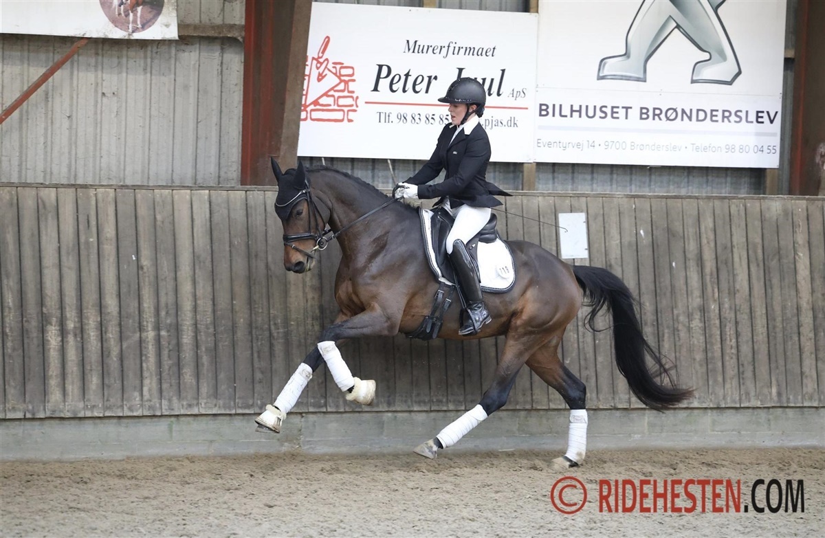 Kjeldgårdens Django e. Hesselhøj Donkey Boy/De Noir opdrættet af Jørgen Nielsenblev og ejet af Barnow Dressage. Kjeldgårdens Django blev fremvist af Susanne Barnow fra Barnow Dressage. Sammen red de sig til en flot anden plads. De blev belønnet med 9,5 for en særdeles god skridt og ydermere 9 for kapacitet. Den samlede score lød på 870.00 point.