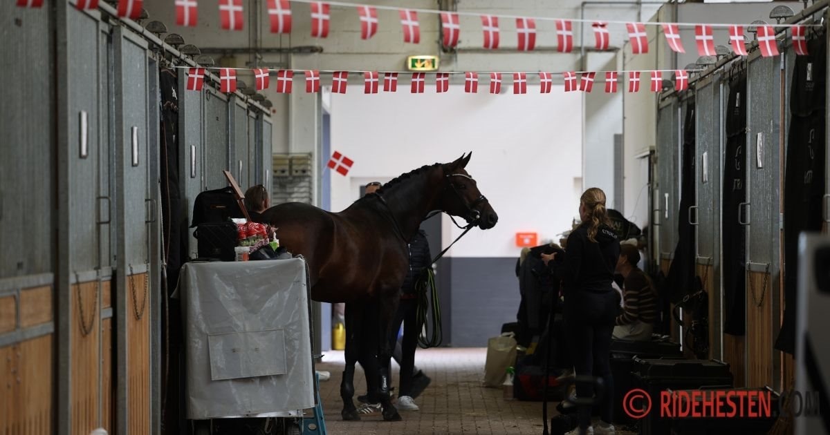 Guldmedaljehoppen Brandtbjergs Divya var helt overlegen og fuldstændig upåvirket af al virakken. Hun var fokuseret på Anders Hoeck, som leverede en overlegen mønstring for dyrlæger og dommere. Alle dansk varmblodsheste gik glat igennem, og nu får hestene et par timers pause i stalden, inden opvisningsbanen åbnes for træning.