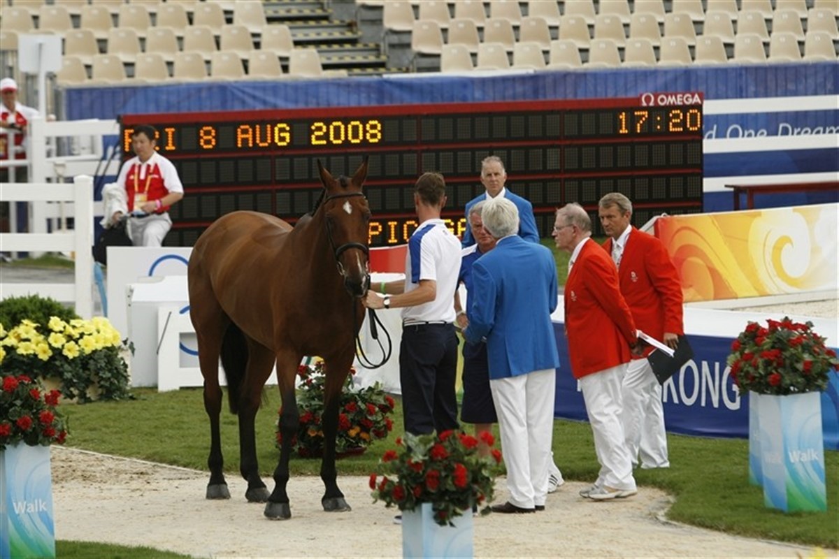 Dyrlæger og officials skarpe øjne har fulgt militaryhestene her til eftermiddag ved OL i Hongkong. 73 militaryheste har været mønstret forbi dommerne i dag, hvor man har taget stilling til hestenes almene velbefindende og sundhed. Flere ryttere måtte en tur i "holding box" med deres heste, en venteposition, som de skal befinde sig i, indtil dommerne igen kalder dem ind til reinspektion. En af de mere prominente ekvipager, som måtte en tur i venteposition var englændernes William Fox-Pitt og Parkmore Ed. Efter nogen debat og endnu en gennemgang af hesten blev han godkendt. Det var ikke bevægelsen, men en hævelse under hestens bug, dommerne var utilfredse med. En rytter, den chillenske Ricardo Stanghers hest Literal, gik ikke gennem inspektionen.