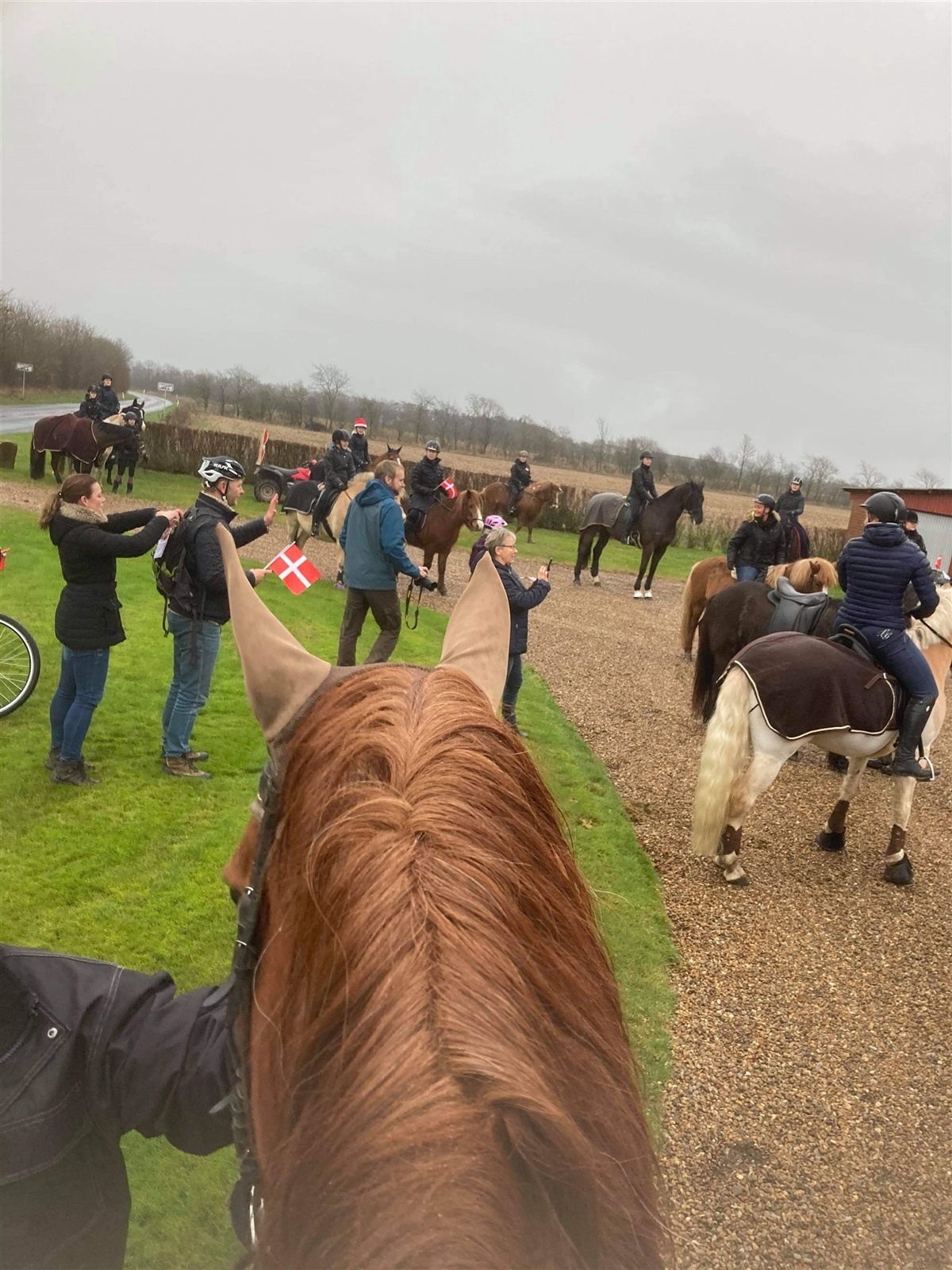 Egon vidste ikke at de mange ryttere ville komme, og han blev da også meget rørt over den fine gestus. Der var også sørget for æbleskiver og lidt og drikke, og Egon selv skænkede whisky op, som han hentede inde i huset, til dem der ville have.