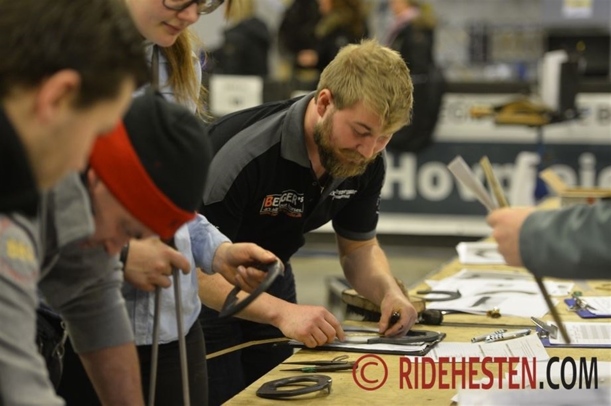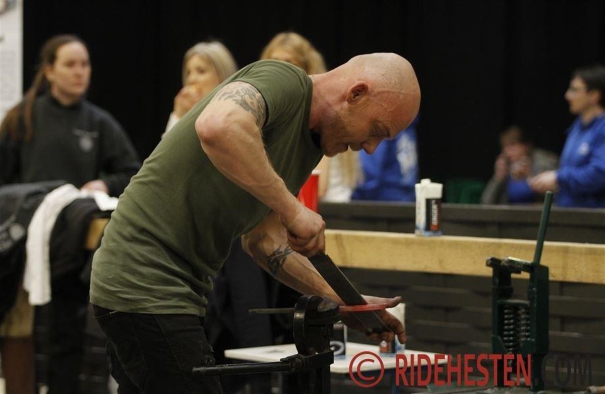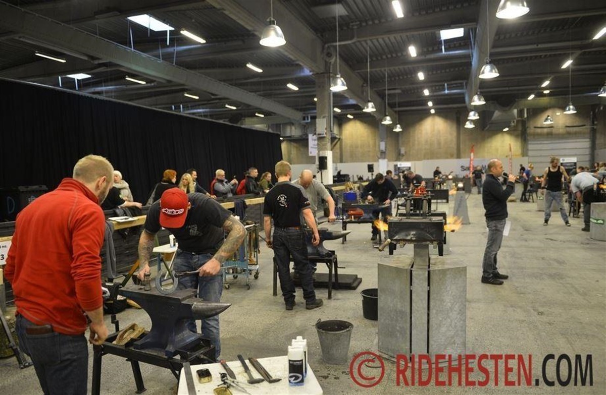 Til konkurrencen er halvdelen af tiden ved at være gået. De nordiske deltagere er dybt koncentrerede og i hallen er det næsten ikke til at få ørenlyd. Hver deltager skal smede to sko, så der er tryk på for at nå det.