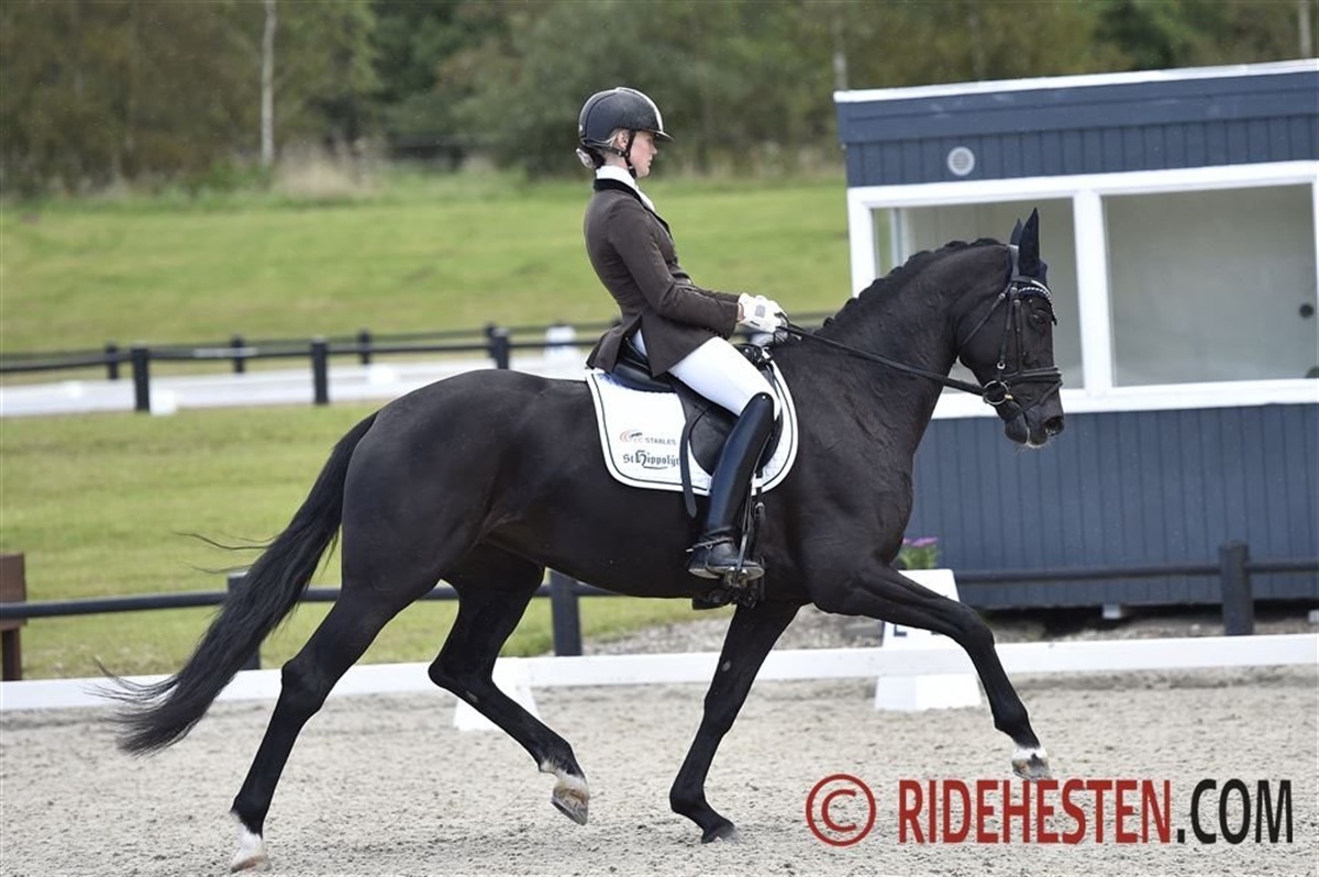 Rikke Dupont kom ind på andenpladsen med Arogato e. Antango du Feuillard vurderet til 84,6 med både 9 for trav og galop - traven er taktfast, stor og rummelig og så blev galoppen vist i god balance.
