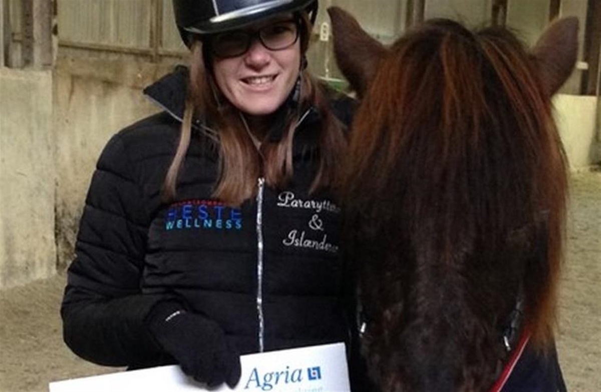 Cecilia Rosell blev meget overrasket, da Agria Dyreforsikring i går kom forbi stalden i Langeskov på Fyn med kage, præmier og en check på 20.000 kroner, der skal doneres til dyrevelgørenhed.