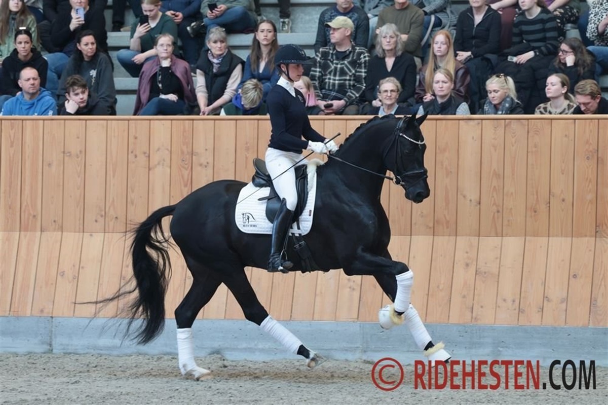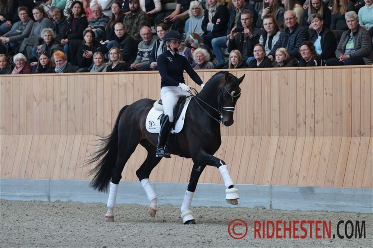 Afslutningsvist viste Sophia den 5-årige vallak Runehøjs Stardust DWB, der fremover får fornavnet Blue Hors, mens Nanna red faren, den nu 14-årige, internationale Grand Prix-hingst Blue Hors St. Schufro e. St. Moritz Junior/Blue Hors Don Schufro.