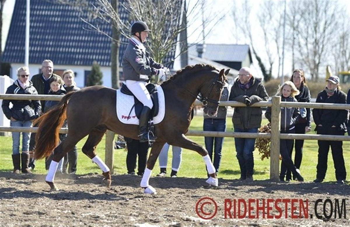 Dagens første hingst var Bøgegårdens Laurino, der i dag blev redet af Tanja Rusovic, som er ansat hos Sune Hansen, der ejer halvdelen af hingsten. Tanja fremviste Laurino på bedste vis og viste, at hingsten er godt på vej i de sværeste øvelser.