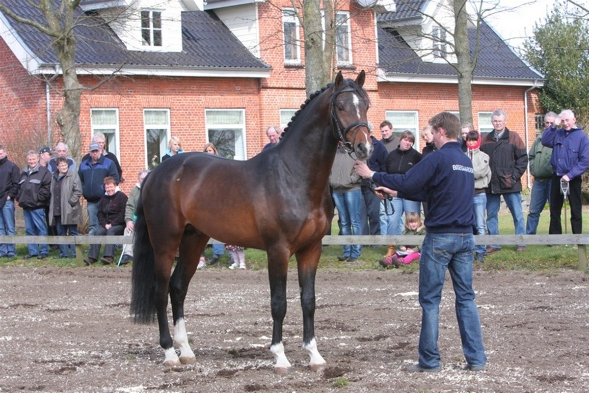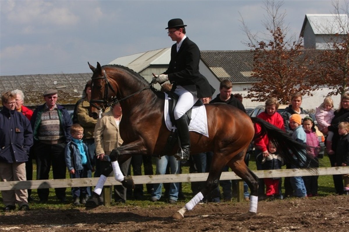 Mange avlere og ryttere var mødt op for at se Bøgegårdens hingste. Hingstestationens stolthed Laurino e. Lauries Crusador/Weltmeyer var i muntert forårshumør og viste sig flot under Ole Linnet. Der blev også vist både føl og plage efter Laurino. De to 3-års hingste Graf Stakkato e. Graf Top/Stakkato og Arlando Z e. Argentinus/Calando I blev fremvist i løsspringning. Arlando Z er ejet af Schou & Skouboe, hingsten er i bedækningssæsonen udstationeret ved Bøgegården. Desværre faldt åbent hus dagen sammen med at Bøgegårdens Chico e. Carano/Lancier var til 35- dages test, så hingsten ikke kunne vises.