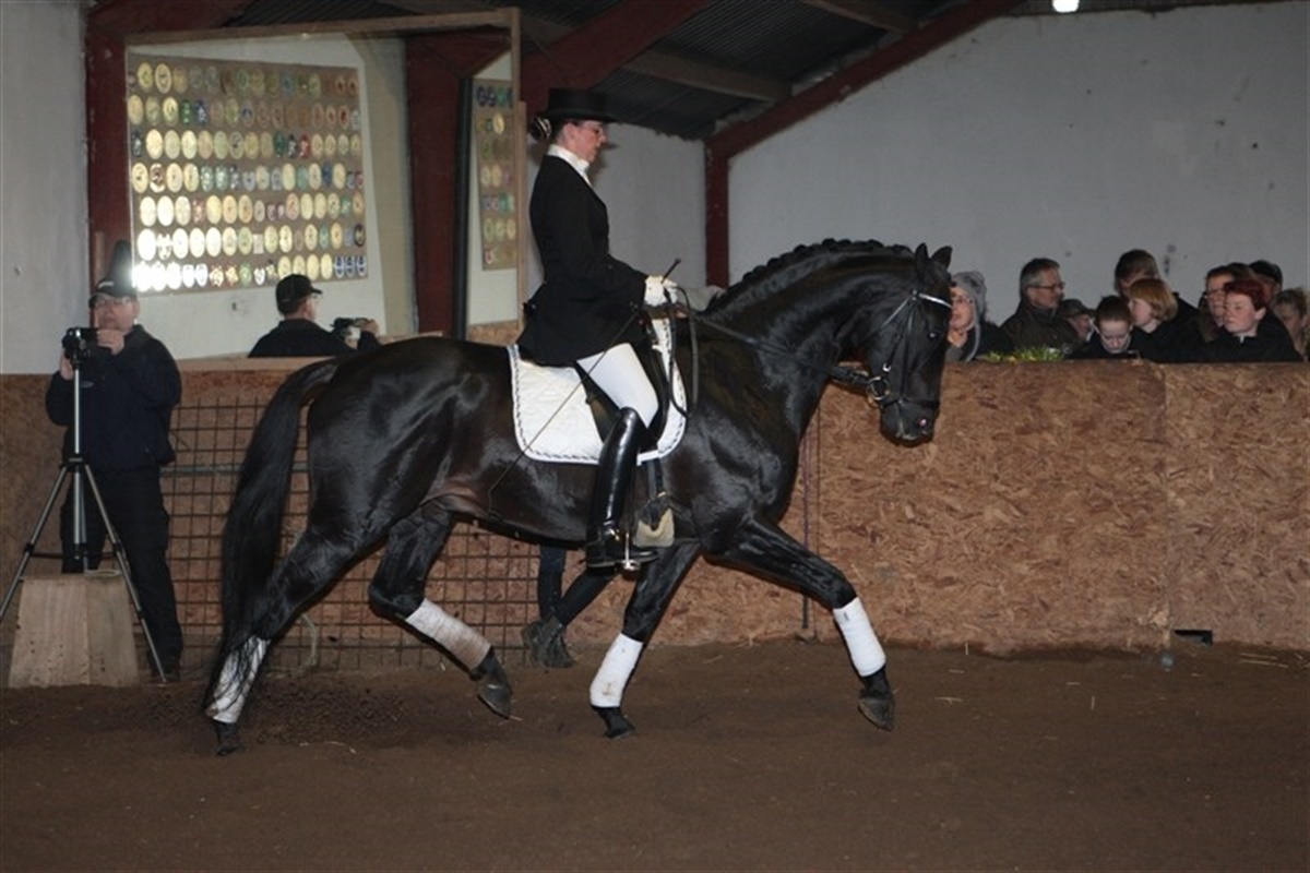 Vejret bød indenfor i stalden og ridehallen, da der i dag blev afholdt Åbent Hus hos Thorup Hjallerup Hingstecenter, hvor der blev fremvist hingste, der er repræsenteret i bl.a. Dansk Varmblod, Dansk Oldenborg Avl, Dansk Sports Ponyavl, Fjordheste og Dansk Pinto Avl og DSAH. Hingstene Trollfin, Højvangs Strauss, Ultimo af Hvarre, Mazzaratti, Aquavit N, Knop Halsnæs, Røgilds El Diaz, Baltimore Vrå og Dicardo blev fremvist i dressur. Bagefter blev hingstene Trollfin og Røgilds El Diaz også vist i springning under rytter. Den fire årige smarte sportsponyhingst Røgilds El Diaz med de bedste internationale blodlinjer, er i år blevet færdigkåret med titlen som årets springhingst 2012. Sidste år var han suveræn og vandt både materialprøven i spring og dressur. Den charmerende pintohingst Mazzaratti viste også sin talenter indenfor dressur, flot redet af Vita Mølgaard. Under fremvisningen havde besøgende mulighed for at varme sig med the, kaffe og et stykke kage. Bagefter benyttede mange chancen for at se hingste og deres afkom i staldene.