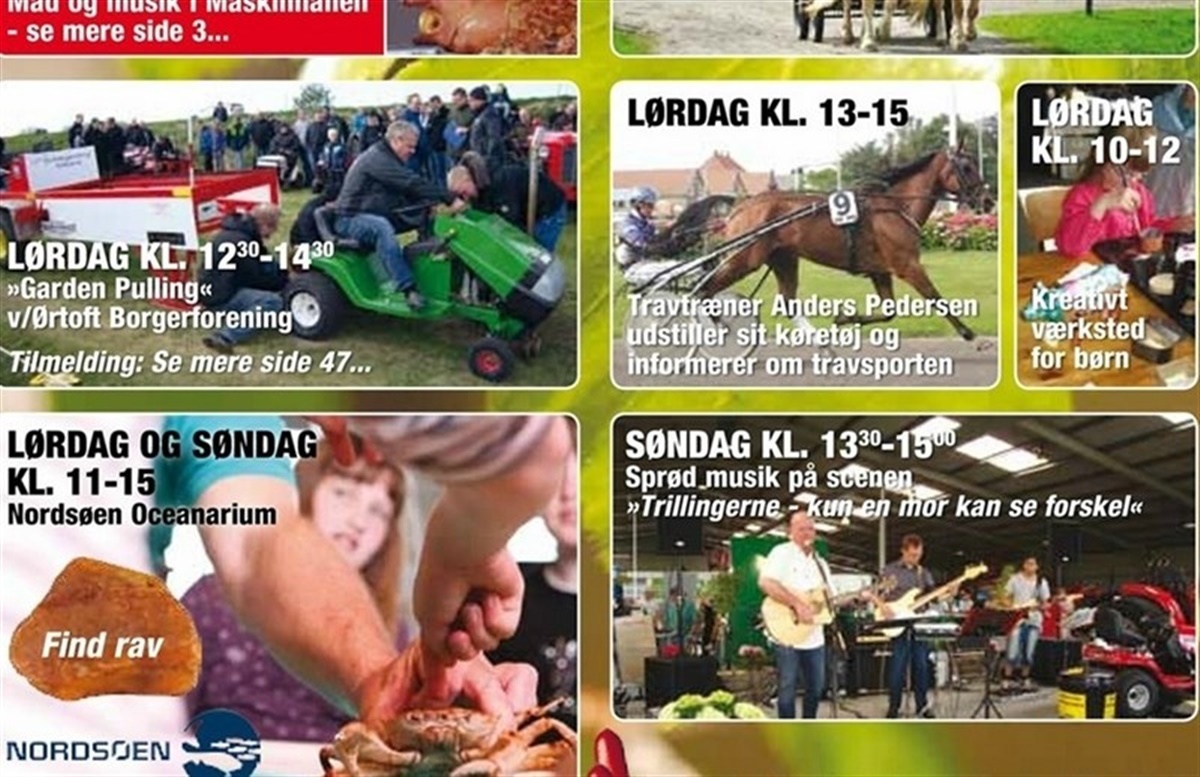 Igår fredag fik pølsevognsholdet langet 11.200 gratis pølser over disken, og de står klar igen resten af weekenden, hvor programmet blandt meget andet byder på Garden Pulling kl. 12.30. Lørdag er der også kreativ værksted for børn, mulighed for at finde rav med Nordsøen Oceanarium, en demonstration af travtræner Anders Pedersen, live musik på scenen med Trillingerne og meget mere.