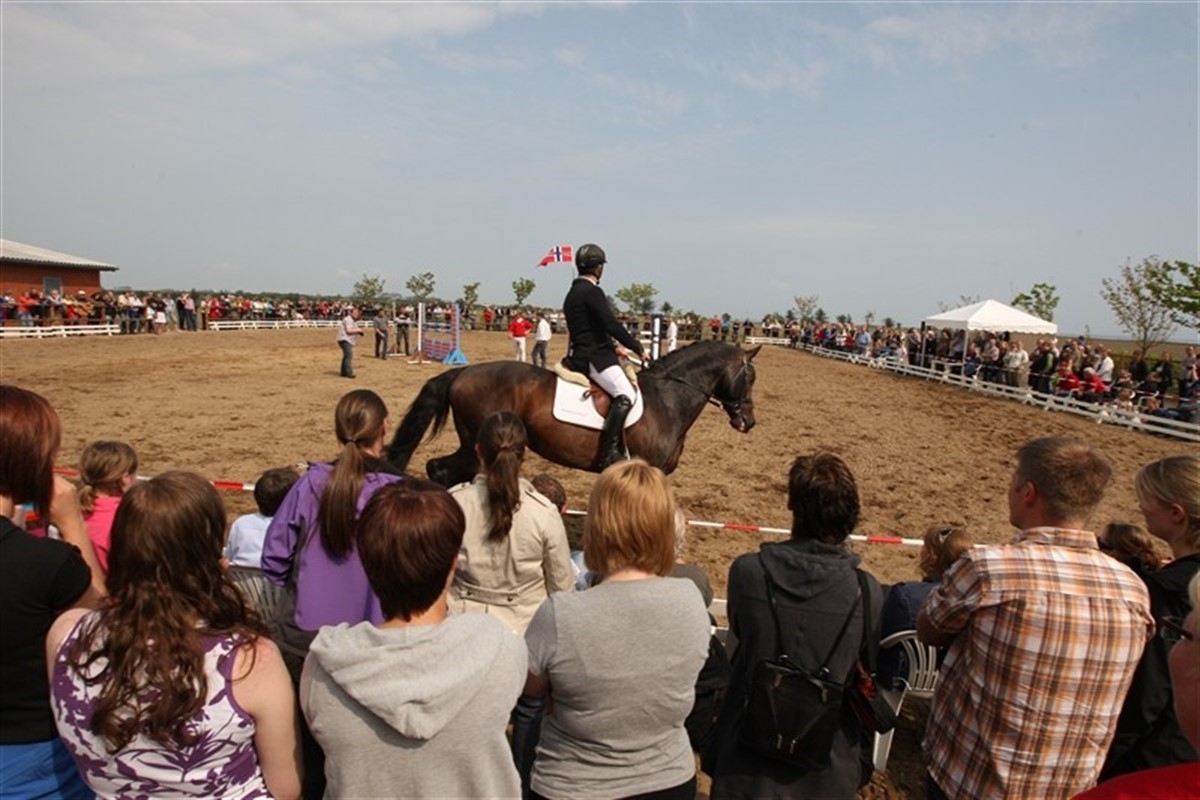 Der var tæt pakket rundt om opvisningsbanen på Katrinelund, hvor rigtig mange var mødt op for at se årets hingstekollektion. Der var mulighed for at de mange nykårede hingste fra Herning, blandt andet dressurfløjhingsten L’Espoir. Springhingstene Cabachon og Crelido, som ellers rides af den norske OL-rytter Stein Endresenm, blev i dag redet af Bjarne Mark. En super flot hingstefremvisning blev naturligvis afsluttet med opvisning af elitehingsten De Noir og hans norske rytter Isabel Bache, inden der var hygge omkring grillen i ridehuset. Se alle billederne af hingstene på mandag på ridehesten.com. Se også webTV i løbet af ugen.