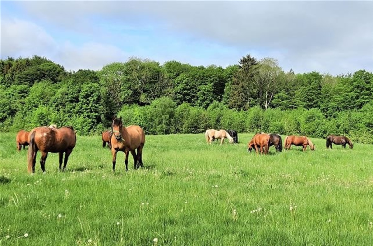 Nyd vores 20 Ha store naturareal, der er indhegnet til vandrefolde/-stier, som de mange heste og ponyer kan bevæge sig rundt i. Vi tilbyder en guidet tur rundt, hvor vi fortæller om Nyt Hesteliv og hestenes historier. Du får en masse viden om hestene på ruten.