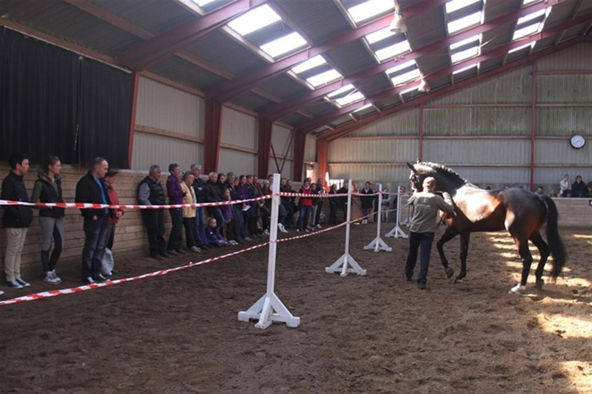 Nørrelund Hingstestations unge skud på stammen, Sir Salvador lagde for og blev flot fremvist af Lotte Straarup. Den smukke og velgående hingst blev kåret ved Hingstekåringen i Herning i sidste måned. Han viste i dag sine flotte gangarter og sit gode temperament frem for de mange interesserede publikummer, som var mødt op. Den nu 19-årige avlshingst, Hector, viste sit stadig unge temperament og ydre ved en tur løs rundt i hallen. For den 9-årige charmerende Showtime, blev det desværre kun til en trukket tur rundt i hallen, da en nylig skade i koden desværre har forårsaget en pause. Også en masse velgående og spændende afkom efter disse tre herrer, blev sluppet fri for, at vise hvad de kunne. Herefter var der mulighed for, at få sig en lille forfriskning bestående af en pølse eller et stykke hjemmebagt kage i det store party-telt på gårdspladsen. Hingstestationens store rideudstyrsbutik; Nørrelund Rideudstyr, bød også på en masse gode tilbud. Følg linket til højre og se Nørrelunds hingste, afkom og salgsheste