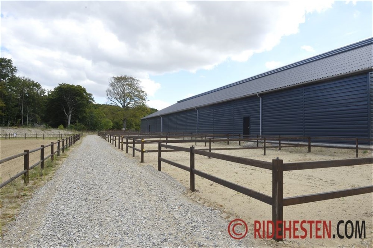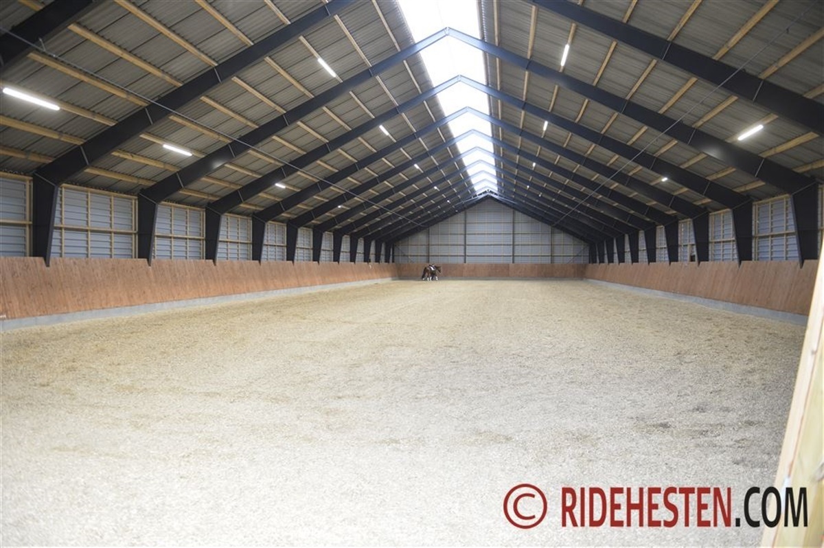 Udover staldene er der anlagt to store udendørsbaner ved siden af hinanden, samt et helt nyt ridehus i 20x60 m. Mellem ridehus og ridebaner er der anlagt en masse små paddock-folde.