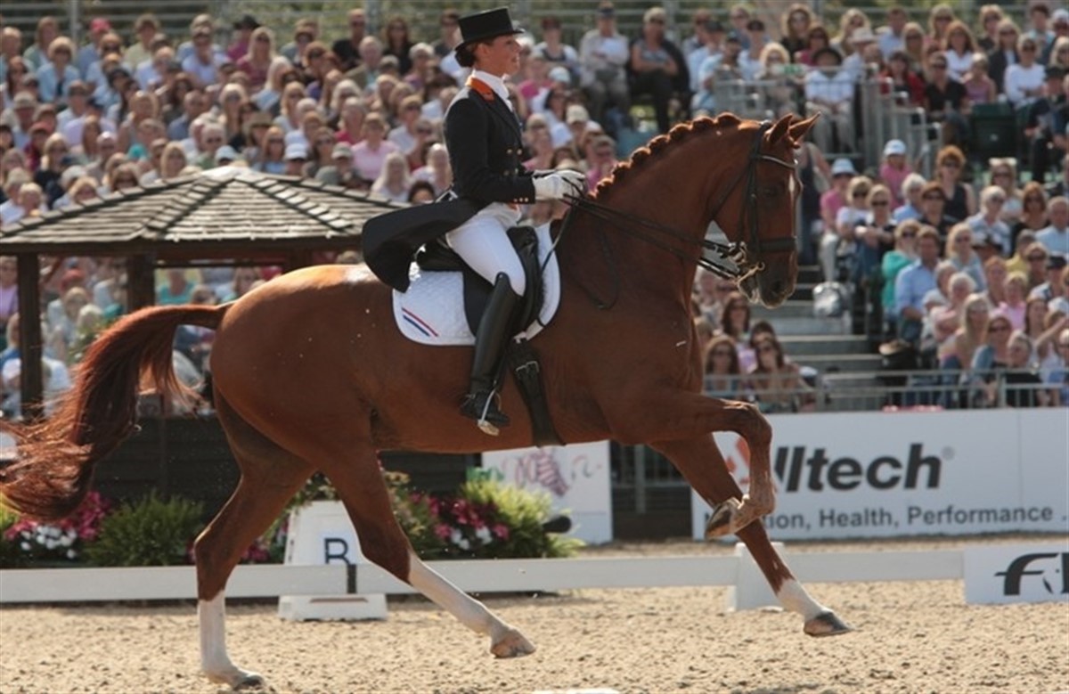 Som sidste rytter på banen kunne Adelinde Cornelissen blot sætte sig for at skulle slå Edward Gals score på 76,808%, og det gjorde hun med resultat 78,851%! Med sin 13-årige vallak Jerich Parzival e. Jazz red hun et næsten fejlfrit program. Publikumsfavoritten - og storfavorit til World Cup-titlen - Edward Gal og 10-årige Totilas e. Gribaldi red selvsagt med knap 77% et rigtig flot program med de "sædvalige" højdepunkter, men også med flere småfejl. Totilas var godt oppe på tæerne, og der indløb små fejl, særligt i galopprogrammet. Det var tydeligt at se, at Edward efter endt ridt var glad glad for højdepunkterne men også synligt lidt ærgerlig over de små kiks, som indsneg sig i ekvipagens ridt. Danske prinsesse Nathalie klarede sig fint og placerede sig i det 15 ekvipagers store felt som nr. 6 idag med scoren 71,191%. Lørdag går Grand Prix Special kl. 10.30 og Grand Prix Kür kl. 15.30.