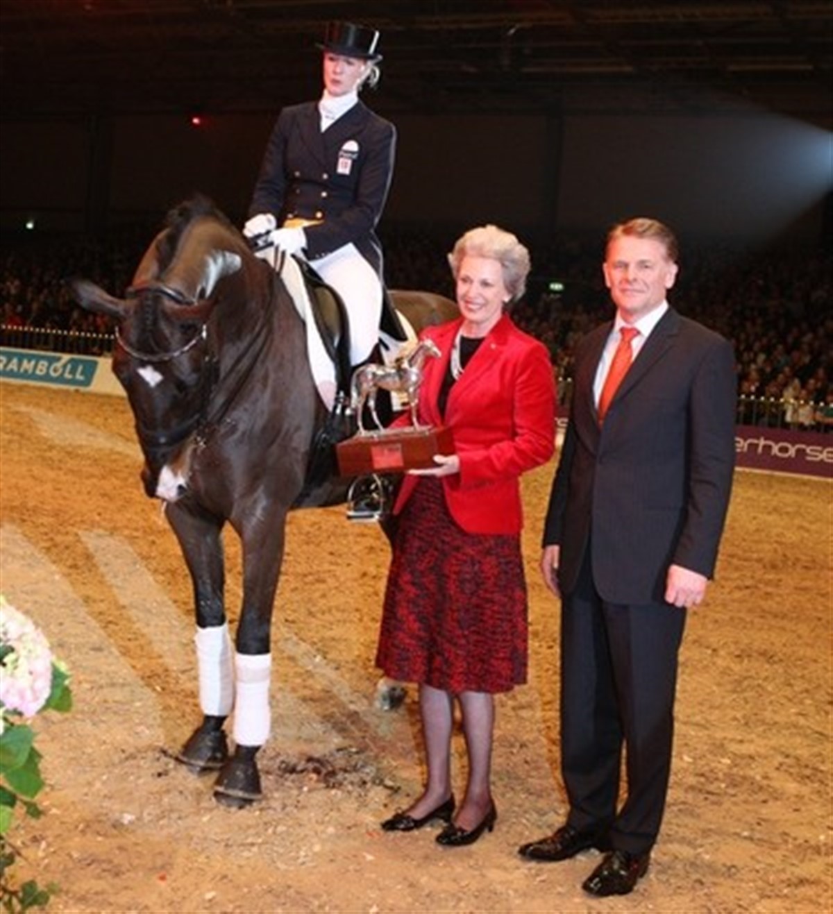 ”Hendes Kongelige Højhed Prinsesse Benediktes Vandrepræmie blev indstiftet i 2005 og tildeles en hingst, som er kåret i Dansk Varmblod, og som ved egenpræstation eller som far til konkurrenceheste har gjort sig gældende i ridesport i kalenderåret forud.” Det er Dansk Varmblods avlsledelse, der udpeger den hingst, der skal tildeles prinsessens vandrepræmie, og i år var der ingen mere indlysende modtager end Prinsesse Nathalies hest Digby. Æres den der æres bør, sagde Dansk Varmblods formand Jan Pedersen. Digby, der er opdrættet af H.K.H. Prinsesse Benedikte på Berleburg, er tidligere blevet kåret som avlshingst ved arrangementet i Herning. Med Prinsesse Nathalie i sadlen har Digby siden hen triumferet på alverdens dressurbaner og var stærkt medvirkende til, at det danske landshold i dressur vandt bronzemedalje ved OL 2008 i Hongkong. Hingstekåringen i Herning giver hvert år tusindvis af hestefolk en uforglemmelig totaloplevelse med kåring, sport, show og udstilling. Det totale antal besøgende forventes søndag at blive opgjort med ny rekord på langt over 50.000.