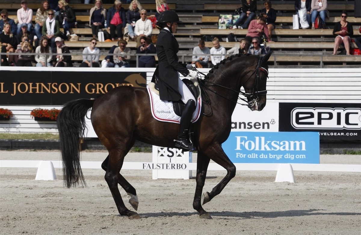 – To gange var der en svensk fejlfri runde, som gav store bifald ovre på tribunen. Det faldt lige samtidig med skridten, hvor han jo helst skal slappe af. Andet bifald kom op til galoppirouetten. Der røg nok omkring tre procent på det – og galoppen plejer ellers være dér, hvor hun scorer højest. Det er svære odds at ride imod, sagde Martin Husmann, som sørgede for at advare Emma-Amalie Wraa om forholdene, inden hun red ind på banen.