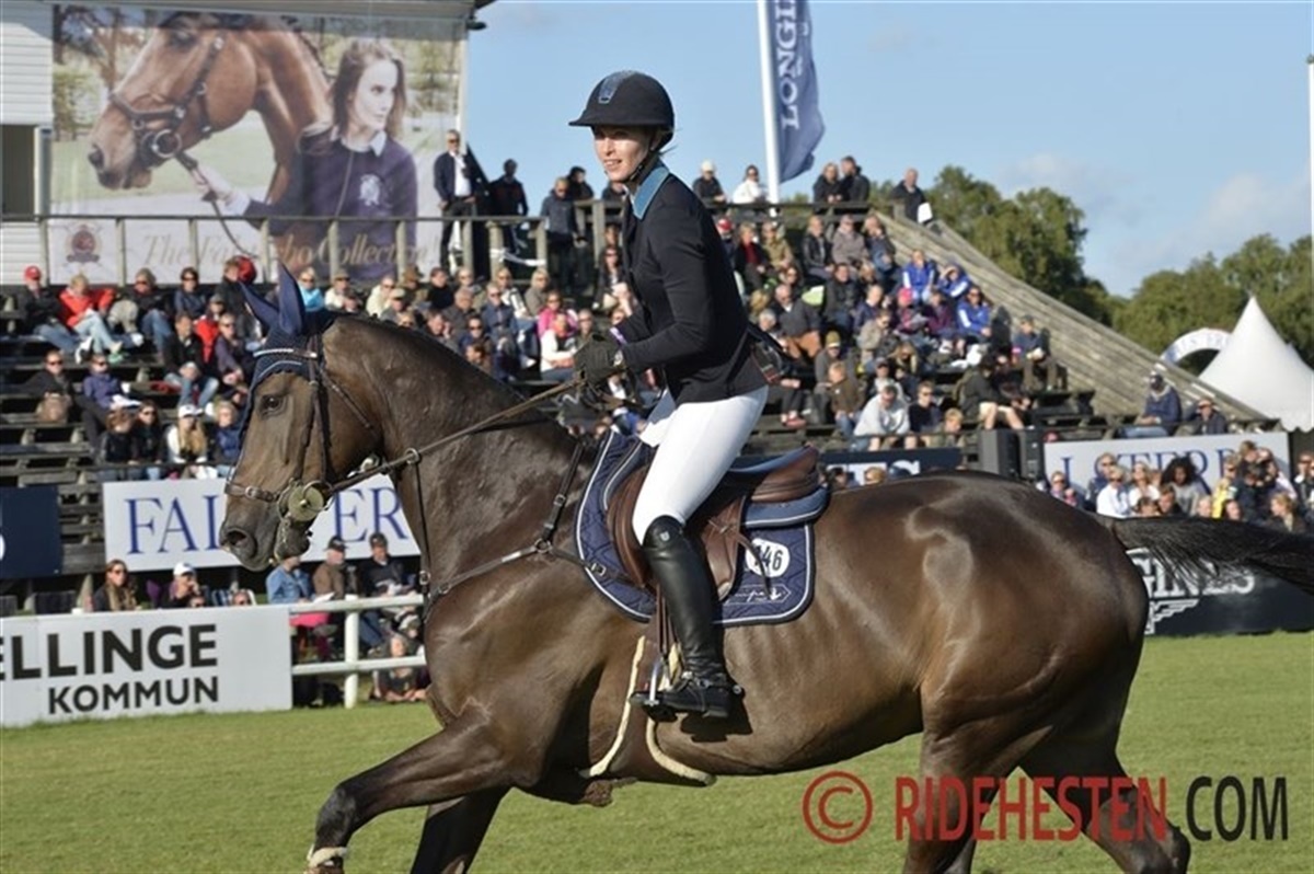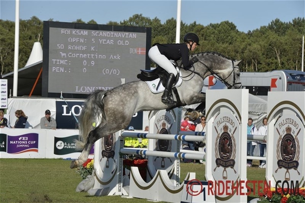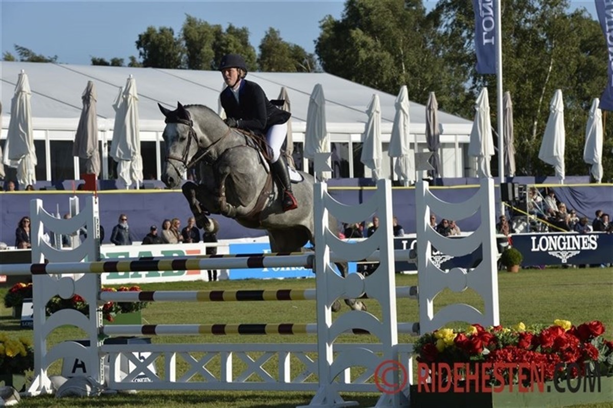 Bedste danske belev dermed Karen Rohde og avlshingsten Cornettino Ask e. Cornet's Stern, de var fejlfrie i en tid, der rakte til 9. pladsen. Jennifer Fogh Pedersen fik to nedslag på Quisandro. Norske Benedikte Endresen, datter af landsholdsrytter Stein Endresen red Katrinelunds avlshingst Sandros Adel e. Sandro Boy ind på tredjepladsen i klassen efter en overbevisende fejlfri hovedspringning, hvor Benedikte klogt valgte at udnytte hingsten store galop til at vinde tid, istedet for at jagte ham gennem banen.