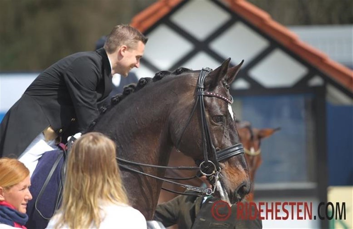 Akeem Foldager e. Akinos/Loran var i Danmark trænet og startet i konkurrence af Andreas Helgstrand og ekvipagen var på det danske landshold ved EM i Herning 2013.