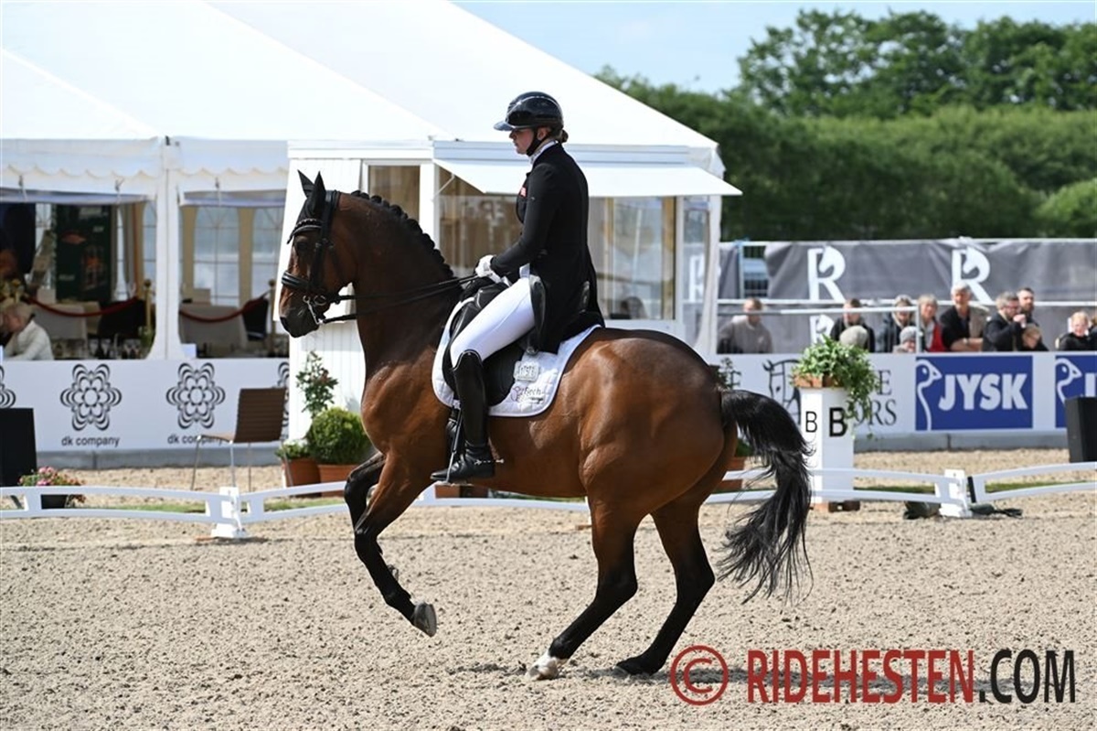 Frederikke Gram Jacobsen red en smuk tur på RGS Finest Alegra e. Finest/ Ampère, der måske endnu ikke er superstærk i piaffe og passage, men ellers havde mange højdepunkter. Generelt var det ridning med lethed og elegance, flydende overgange samt en fokuseret og superlydig hest. Med 68,047% sikrede de sig i dag en fjerdeplads.