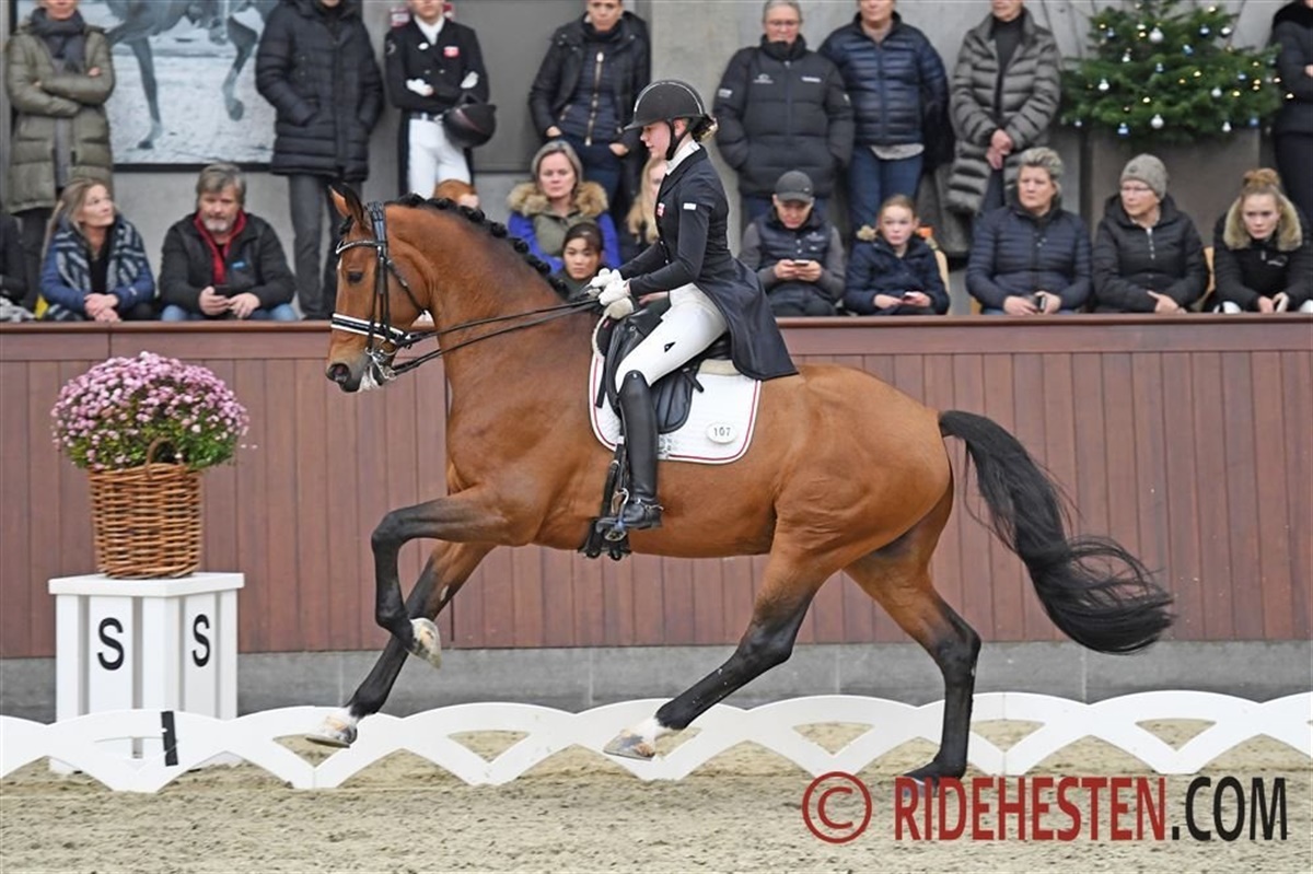 Frederikke Gram Jacobsen, der i lighed med Maria Mejlgaard Jensen var på det bronzevindende hold ved EM, kom ind på en samlet tredjeplads efter en flot kür med Ryvangs Zafina e. Blue Hors Zack (opdr. Alex Dyrgaard) som brillerede med sikre, imponerende øgninger og stor ridelighed.