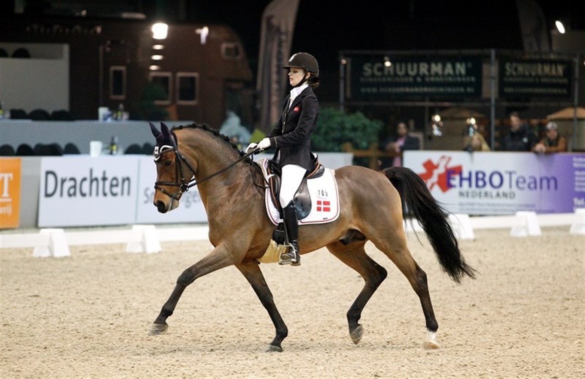 Med ponyen Kloosters El Tino opnåede Alexandra Sørensen i dag 66,951% i den individuelle ponyklasse ved det internationale stævne i Drachten. De to øvrige danske ekvipager, Emma Nymand/Kinski WE og Maria Christensen/Wegelins Goya blev nr. 12 og 13.
