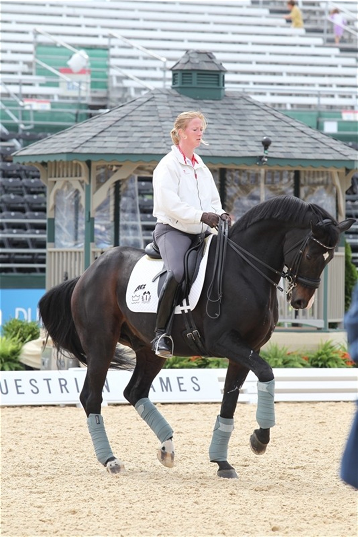 Jeg havde fornøjelse af at overvære Sune Hansen og prinsesse Nathalie træne i dag forud for morgendagens dressurkonkurrence i Kentucky. Begge ryttere var dybt koncenterede om opgaven, og det skyldes ikke alene deres professionalisme, men også, at opvarmningsbanen og konkurrencebanen inde på stadion myldrede med heste, trænere, grooms og nysgerrige af enhver slags. Både Sunes Casmir og Nathalies Digby så rigtig herlig fit ud i dagens træning. Og landstræner Rudolf Zeilinger er også godt tilfreds med hestenes træningstilstand.