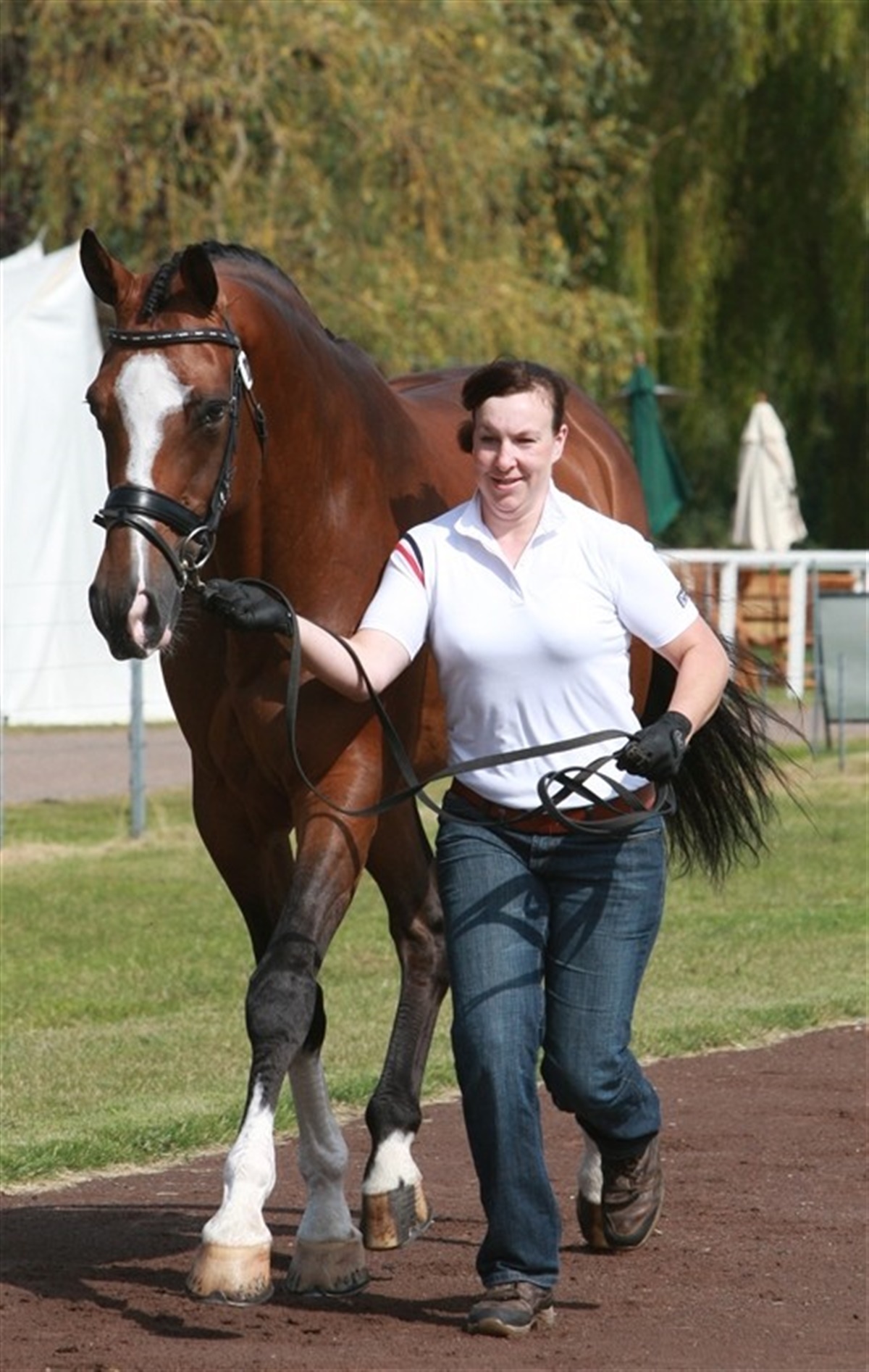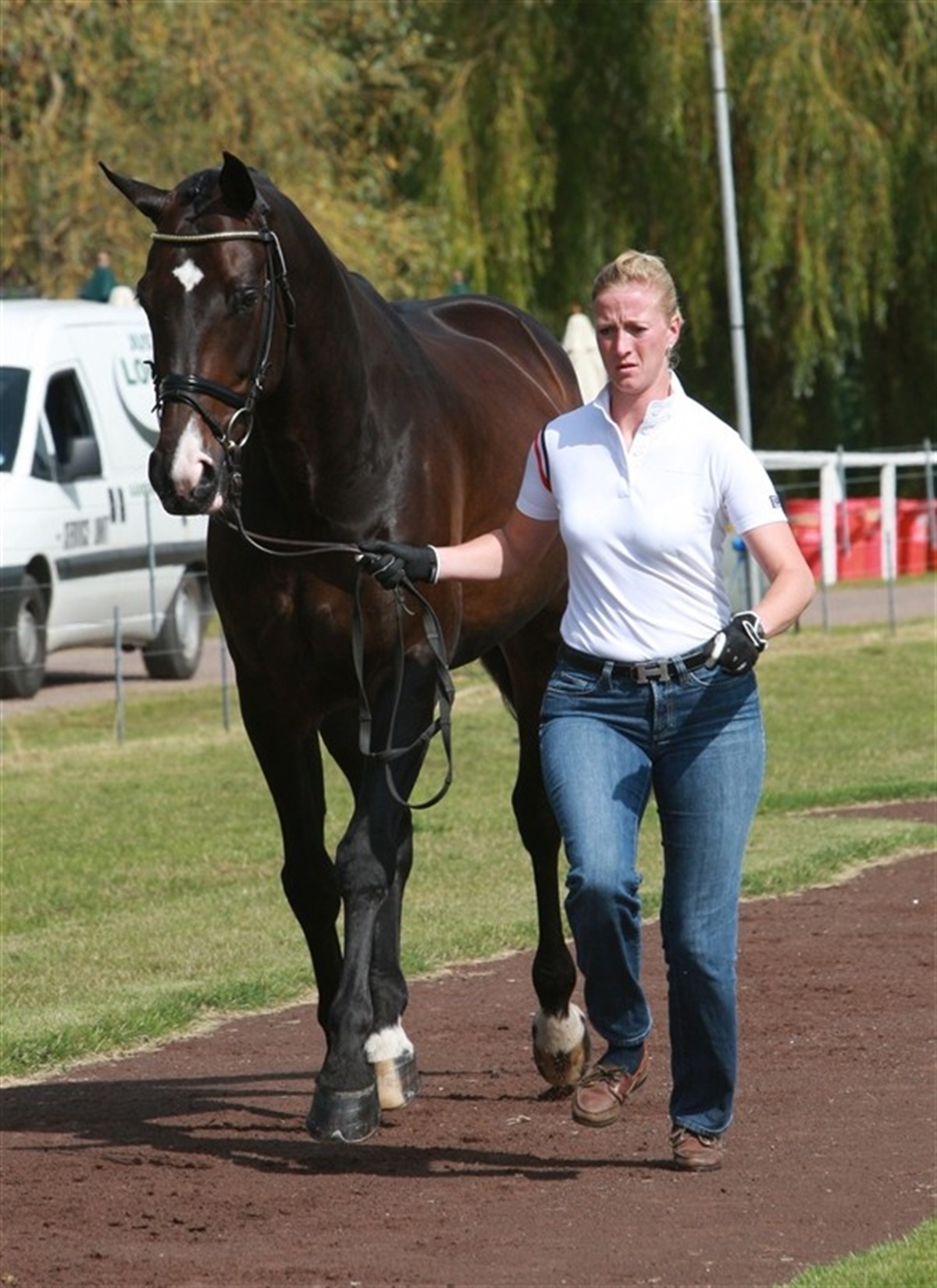 De fire danske dressurheste (Gredstedgårds Casmir, Carabas, Exquis Clearwater og Digby) så godt ud i dagens vet.tjek der indleder konkurrencerne ved EM i Windsor. Sune Hansen var først med Gredstedgårds Casmir, der tager den udfordring med overlegen ro. Der kom helt anderledes gang i den da Carabas kom på banen på fast bund, i lighed med flere af de øvrige hingste på de konkurrerende landshold, så pustede han sig op og begyndte at springe lidt rundt, hugge i biddet og i det hele taget så han ud til at more sig herligt. Andreas så knap så begejstret ud, og dyrlægen, der var sammen med teknisk delegeret Mariette Withages og dressurdommer Stephen Clarke, ønskede også at se hingsten trave en gang mere på fast bund. Andreas fik lidt mere ro på hingsten, som så travede nydeligt op mod dommerne og fik sit ok. Der var også omgående godkendelse til Nathalie zu Sayn Wittgensteins Digby og til Anne van Olsts Clearwater. Nu kan rytterne og hestene så nyde resten af dagen. De har trænet godt, og alle heste og ryttere i den danske lejr er sunde og ved godt mod, melder landstræner Rudolf Zeilinger og holddyrlæge HC Mathissen. Det bliver Sune Hansen, som kommer først på banen for Danmark i morgen tirsdag, hvor den første halvdel af Grand Prix-klassen afvikles, fulgt af Anne van Olst. Anden afdeling rides onsdag og her starter Andreas Helgstrand først, efterfulgt af prinsesse Nathalie.