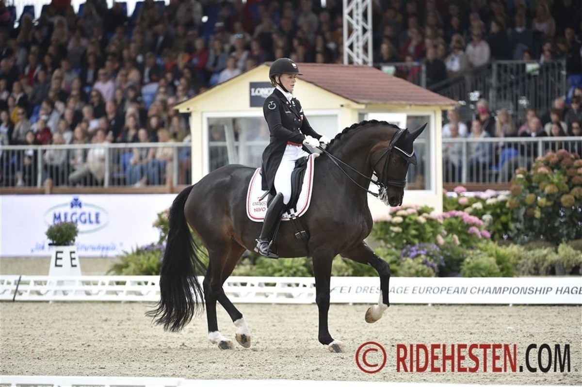 Carina Cassøe Krüth placerede sig i dag på en flot femteplads på trods af en fejl i etter-changementsserien. I sadlen på Heiline's Danciera e. Fürstenball/ De Niro (opdr. Stald Heiline) viste Carina flot ridning, mens hoppen viste stor kvalitet og mange gode momenter. Ekvipagen opnåede i dag en flot score på 75,094 procent, men der er ingen tvivl om, at der er endnu mere at hente for ekvipagen, hvis det hele fungerer og de små fejl kan undgås, når de på lørdag skal ride deres kür.