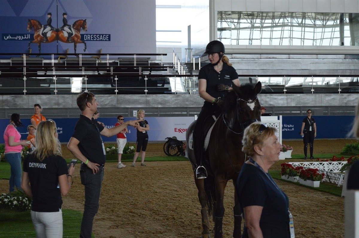 De dansk paradressurryttere i Doha er i CPEDI3* er Caroline Cecilie Nielsen (grad II) med hesten Leon, Susanne Jensby Sunesen (grad III) med hesten Thys Que Faire og Camilla D.F. Christensen (grad IV) med hesten Østergårdens Delight.