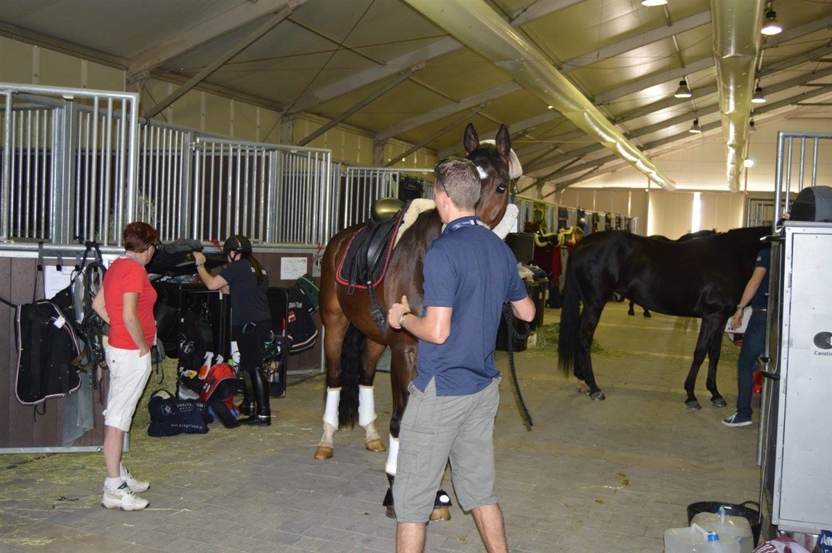 Der er godt stemning blandt de danske paradressurryttere, deres trænere, holdledere, grooms og familie, for alle tre heste er nu igennem vettjek uden problem. I morgen gælder det dressurrytternes heste.