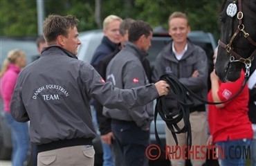 Ca. 150 heste (mesterskabsheste, samt de heste, der skal deltage i CSI-klasserne) var i dag igennem tjek, og alle heste klarede skærende. Enkelte heste måtte dog en tur rundt om holding-boksen og tjekkes en ekstra gang inden de kunne godkendes. Blandt de heste, der måtte i holding-boks var bl.a. den olympiske mester Steve Guerdats 1. hest, Nino des Buissonnets – men den brune vallak blev godkendt i 2. omgang og det schweiziske hold kunne draget et lettet suk.