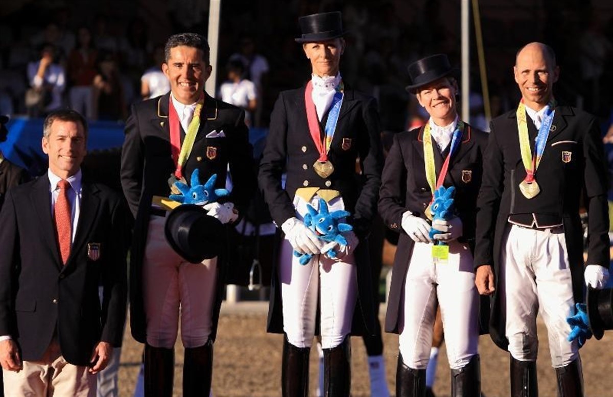 Heather Blitz og dansk varmblodshesten Paragon e. Blue Hors Don Schufro/Loran (opdr. Richard W. Freeman) slog deres egen rekord i Prix St. Georges ved i holdkonkurrencen i Guadalajara at score 75,105%, hvilket blev klassens anden højeste individuelle score. Amerikanske Steffen Peters scorede med Weltino’s Magic intet mindre end 80,132%, hvilket er rekordscore ved de Panamerikanske Lege. Alle fire amerikanske ekvipager endte indenfor top ti og det guldvindende hold blev efterfulgt af Canada der vandt sølv og Columbia, der sikrede sig bronze i holdkonkurrencen. Heather Blitz var særdeles tilfreds med sin danske hest, som hun har ejet fra den var føl. Hun fortæller, at han som altid var meget lydig og dertil gik energi og afspændthed op i en højere enhed. Paragon er ud af den i Danmark så velkendte Pari-hoppestamme. Hans mormor, Elitehoppen Ann-Pari, er udover at være mor til guldmedaljehoppen Pari-Luna også mormor til bl.a. Grand Prix-hesten Pari-Cash Foldager (Michæl Søgaard), UVM-hesten og sølvmedaljehoppen Stasia Eg, avlshingsten Freezbee-Pari og sølvmedaljehoppen Pari-Florenze. Derforuden er hun oldemor til Heather Blitz’ fremtidshåb Poydras e. Solos Landtinus / Rambo.