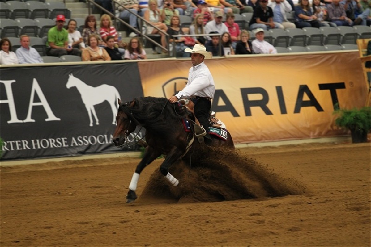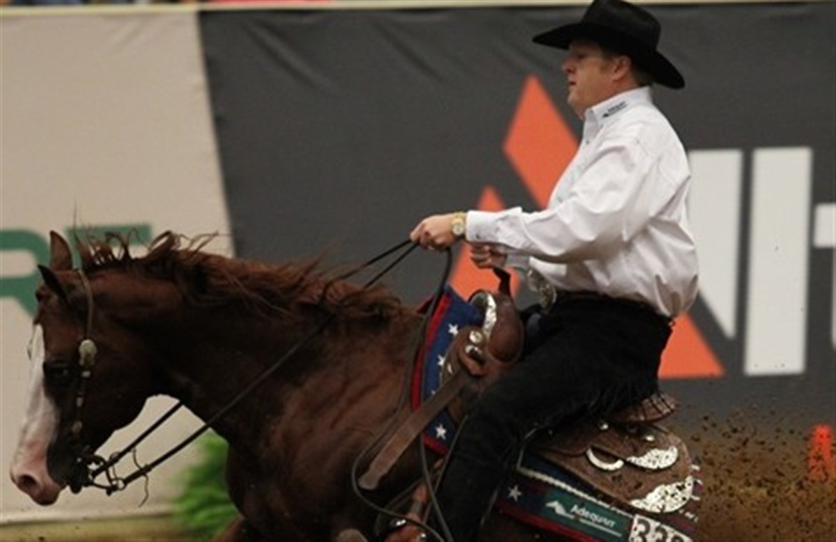Der var dramatik på banen under reiningfinalen i dag ved VM i Kentucky, Shawn Flarida, der var ankermanden på det guldvindende amerikanske hold, knækkede en bøjle under sit ridt, og det kostede en mulig medalje. Vinder med stor margin til konkurrenterne blev USA's Tom McCutcheon på Gunners Special Nite foran landsmanden Craig Schmersal og Mister Montana Nic, mens den regerende canadiske verdensmester Duane Latimer vandt bronze med Dun Playin Tag.