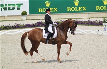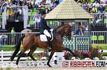 I The Greatest Show dansede Addict de Massa e. San Amour/Maestro (opdr. Sylvain Massa, Frankrig) meget kraftfuldt, taktfast og sikkert – ikke mindst i piaffe og passage, som den sorte hingst mestrede til perfektion. Han er uddannet af Anne-Sophie og Arnaud Serre, og netop Arnaud Serre red Addict de Massa ved UVM 2016 i Ermelo.